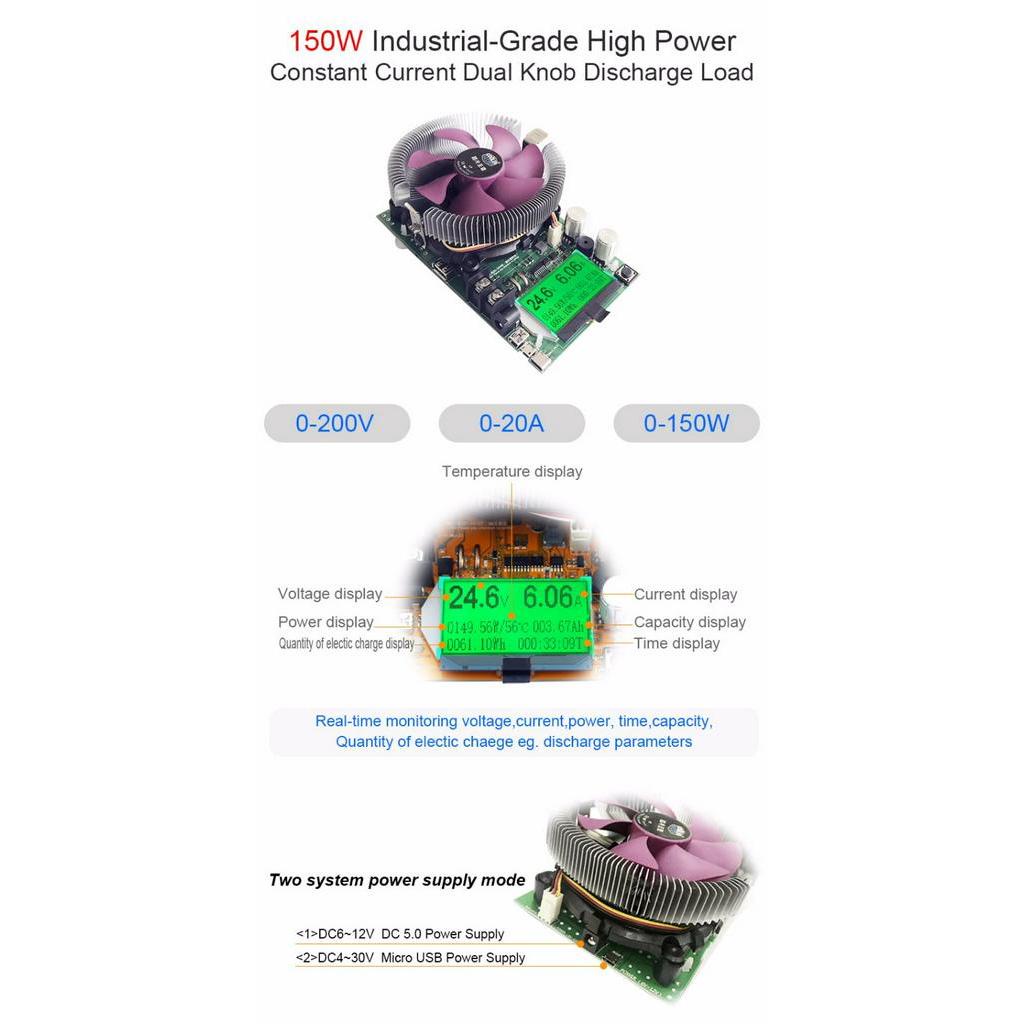 150W adjustable Constant Current Electronic Load Battery Tester 12V24V48V Lead-acid lithium Discharge Capacity meter 200V/20A