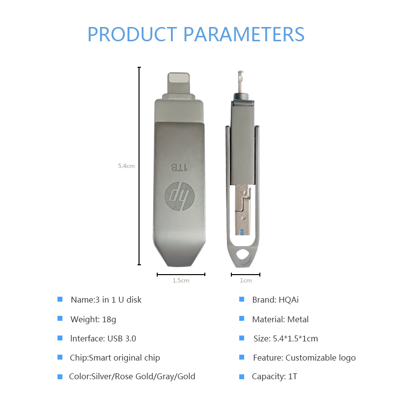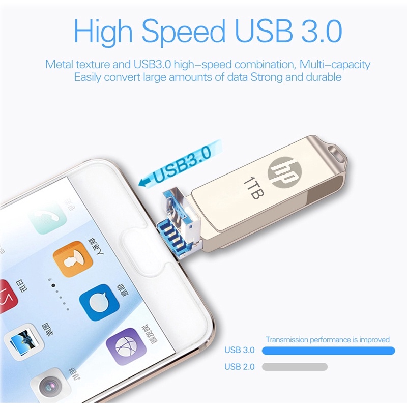 【Ready Stock】HP 3.0 USB 1TB 3 in 1 OTG Flash Drive Metal Waterproof High speed U Disk pendrive for iphone6/7/8/X/XR/11/12 /13