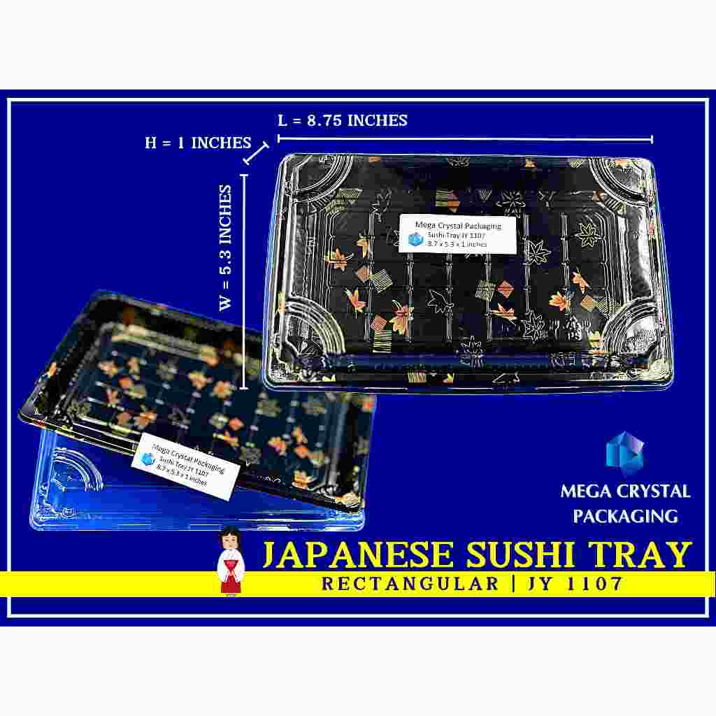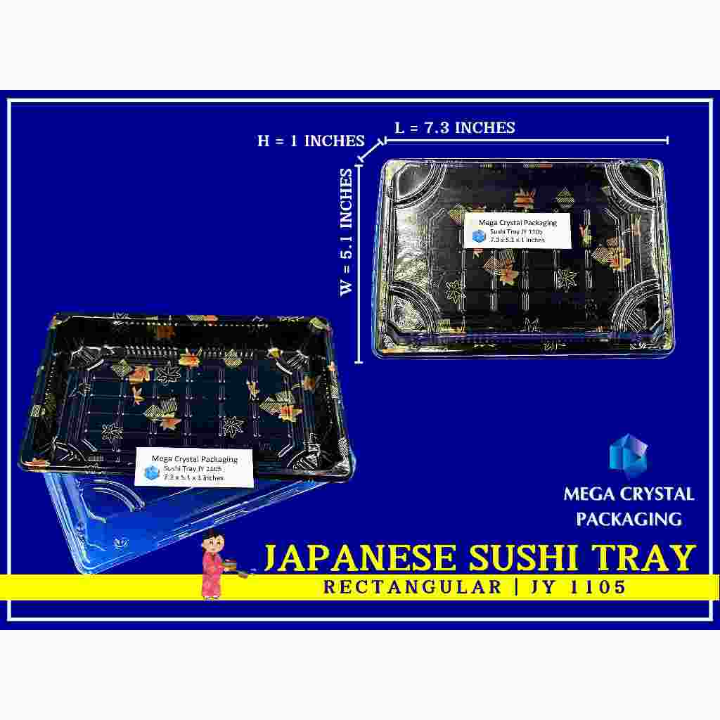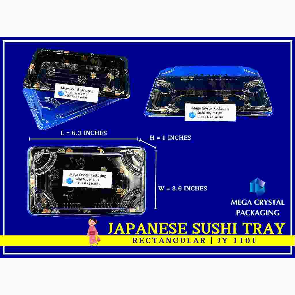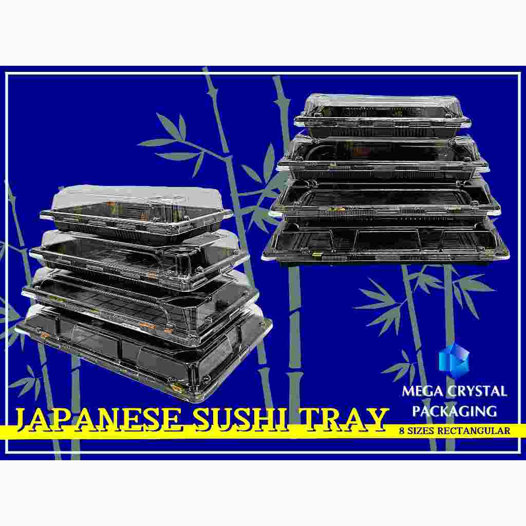 [ 25/50 Pcs. ] Sushi Tray Rectangle Black with Dome Lid 8 Sizes
