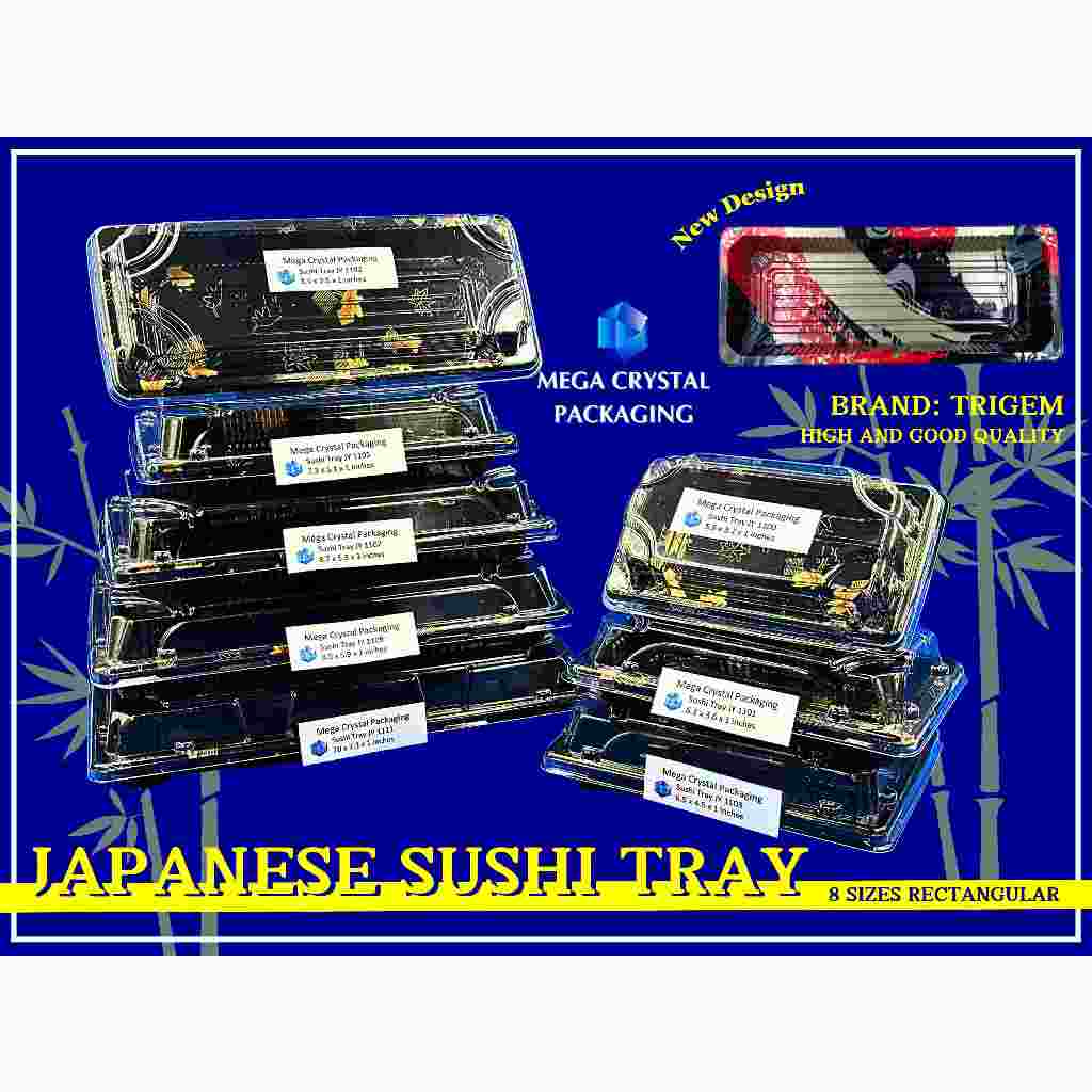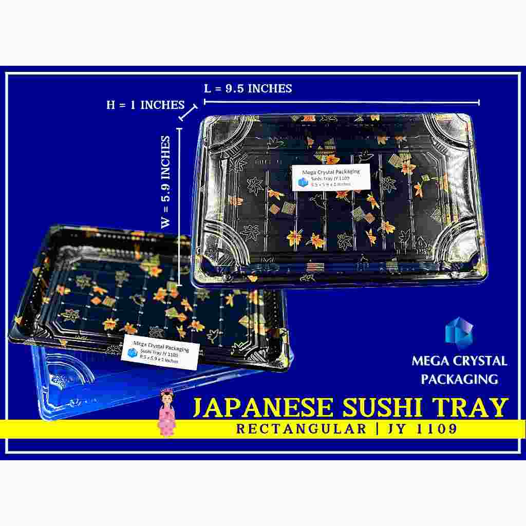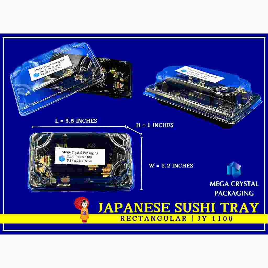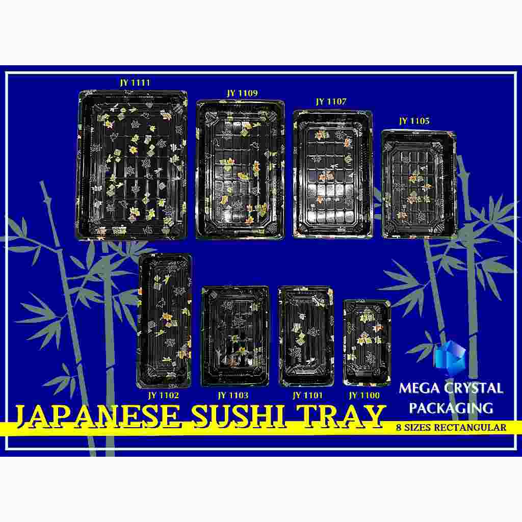 [ 25/50 Pcs. ] Sushi Tray Rectangle Black with Dome Lid 8 Sizes