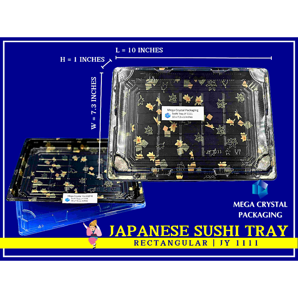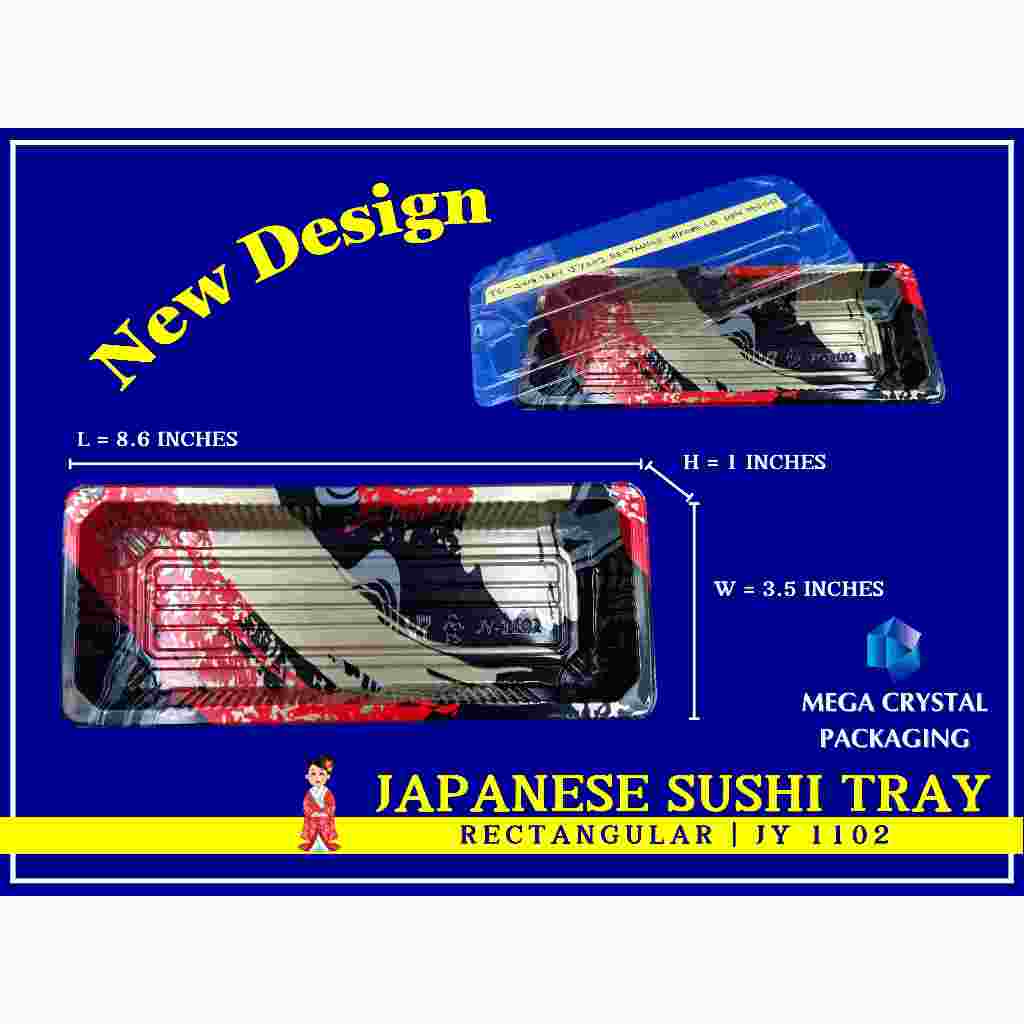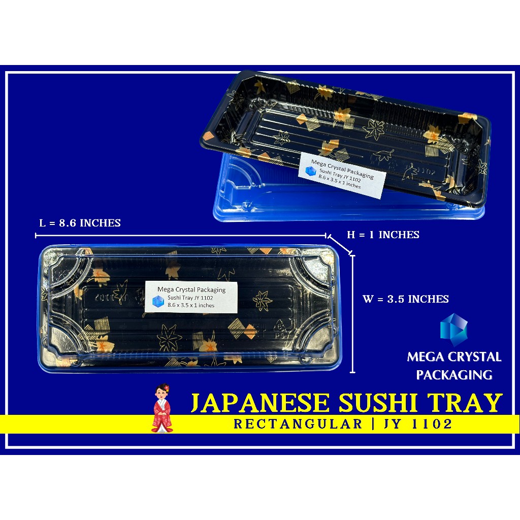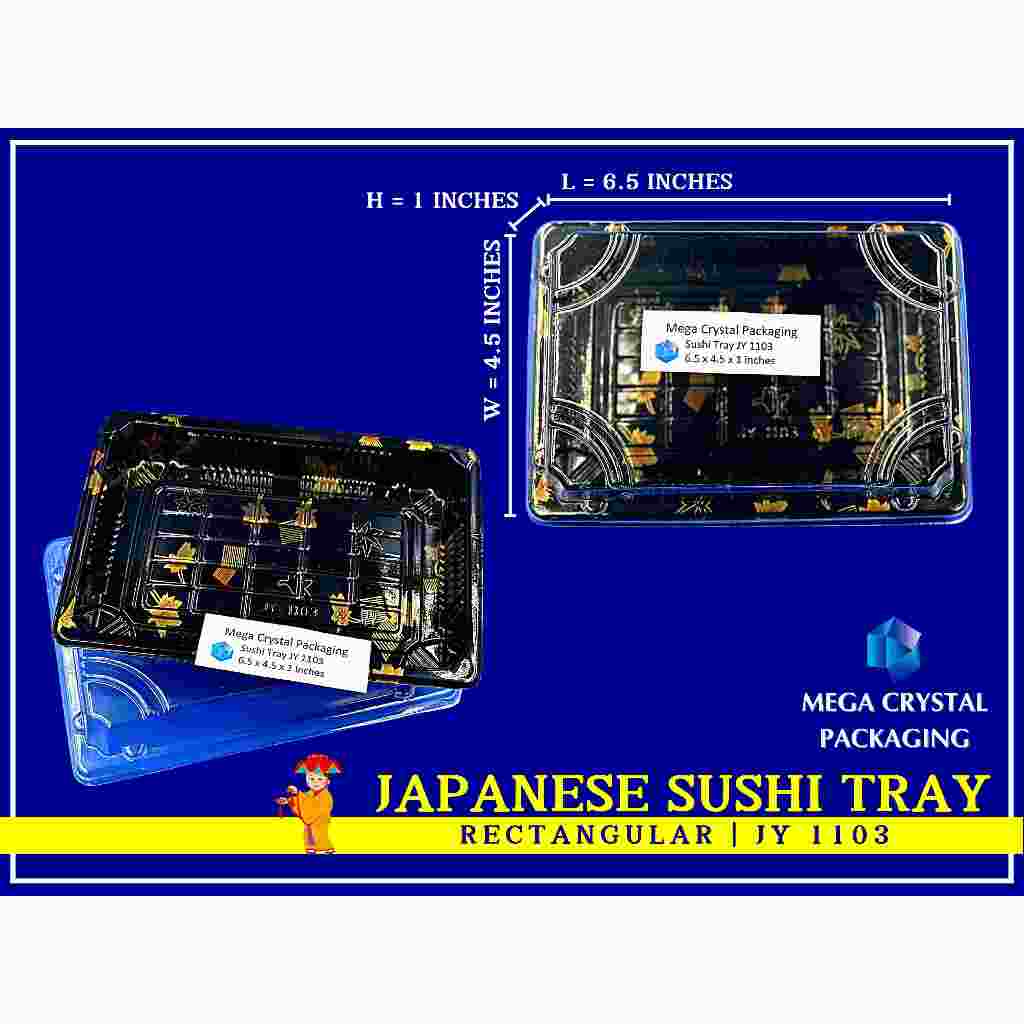 [ 25/50 Pcs. ] Sushi Tray Rectangle Black with Dome Lid 8 Sizes