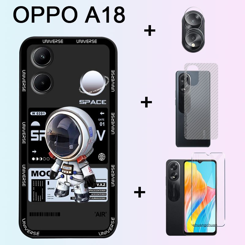 OPPO A18 tempered glass film and phone case +Camera lens film +back film +Trendy Brand Cartoon Mechanical Sesame Street Phone Case 4in1