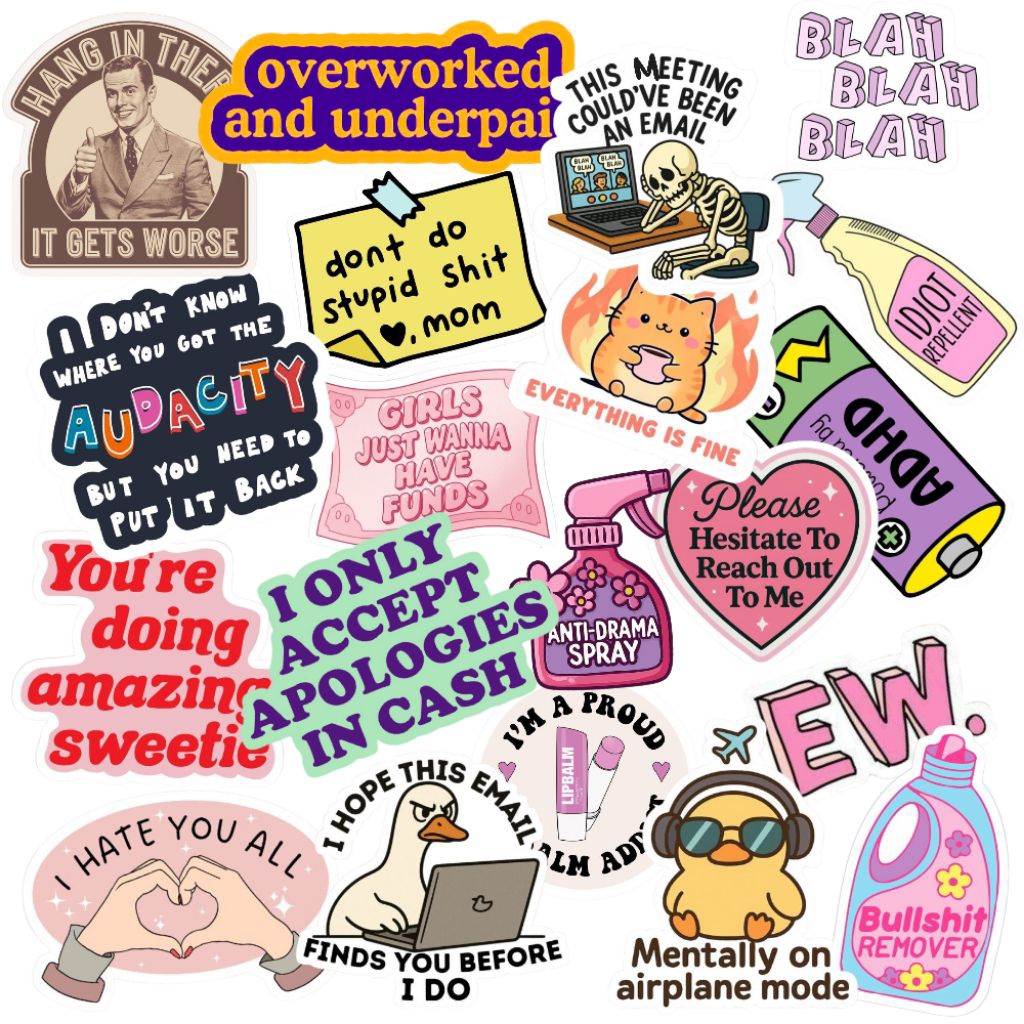 20pcs Funny Workplace Humor Sticker Pack Coworker Gift Laptop Water Bottle Waterproof Vinyl Stickers