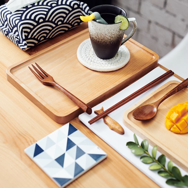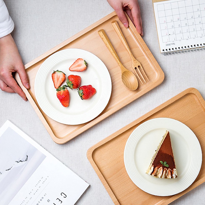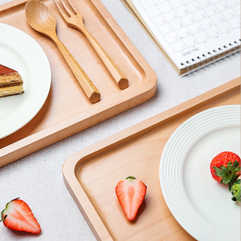 Rectangular Wood Tableware Serving Tray Decorative Food Holder Container Fruit Breakfast Storage Kitchen Accessories