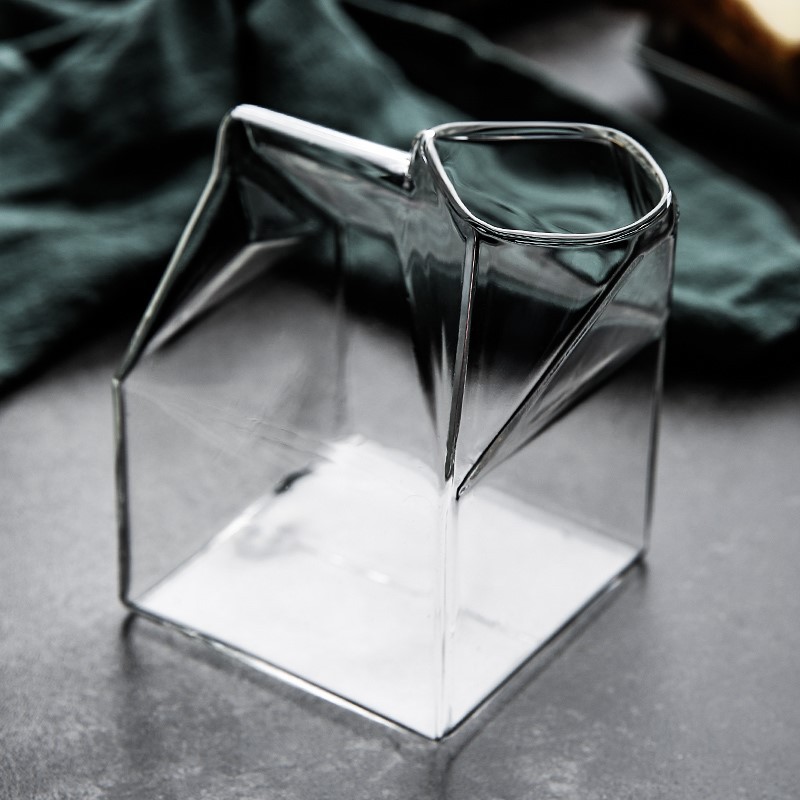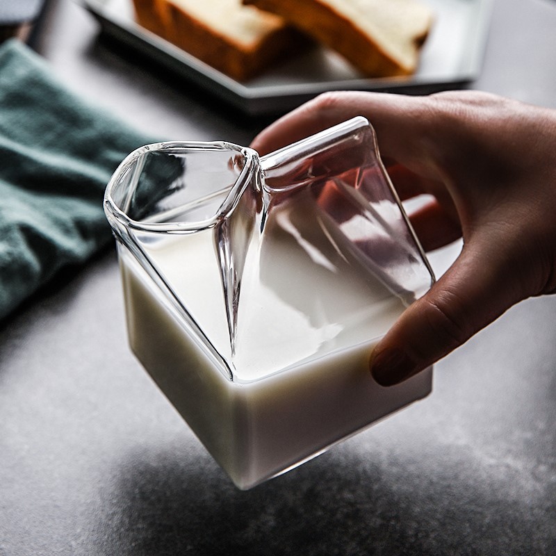 Square Milk Glass Milk Box Glass Mug Milk Box Cup Home Kitchen Tableware Factory Direct Sale