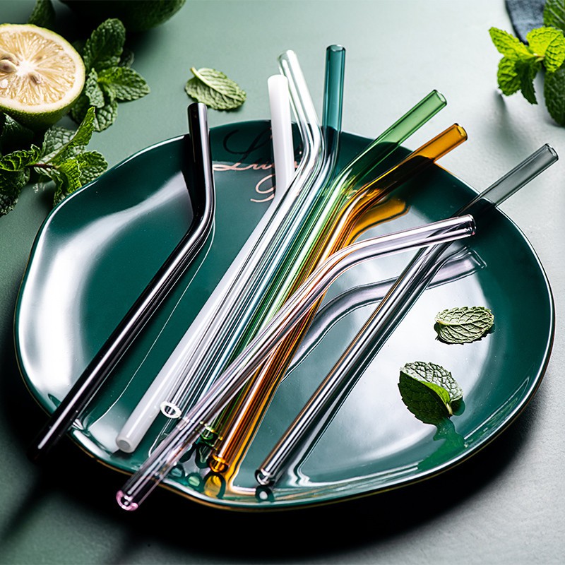 Clear Bent Glass Straws Reusable Wedding Birthday Party Drinking Straws Thick Straws