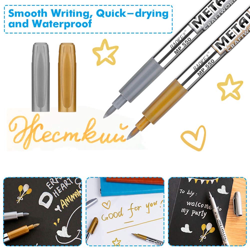 DIY Gold And Silver 1.5mm Metallic Marker Pen Waterproof Permanent Paint For Painting Pens Supplies Craftwork Art