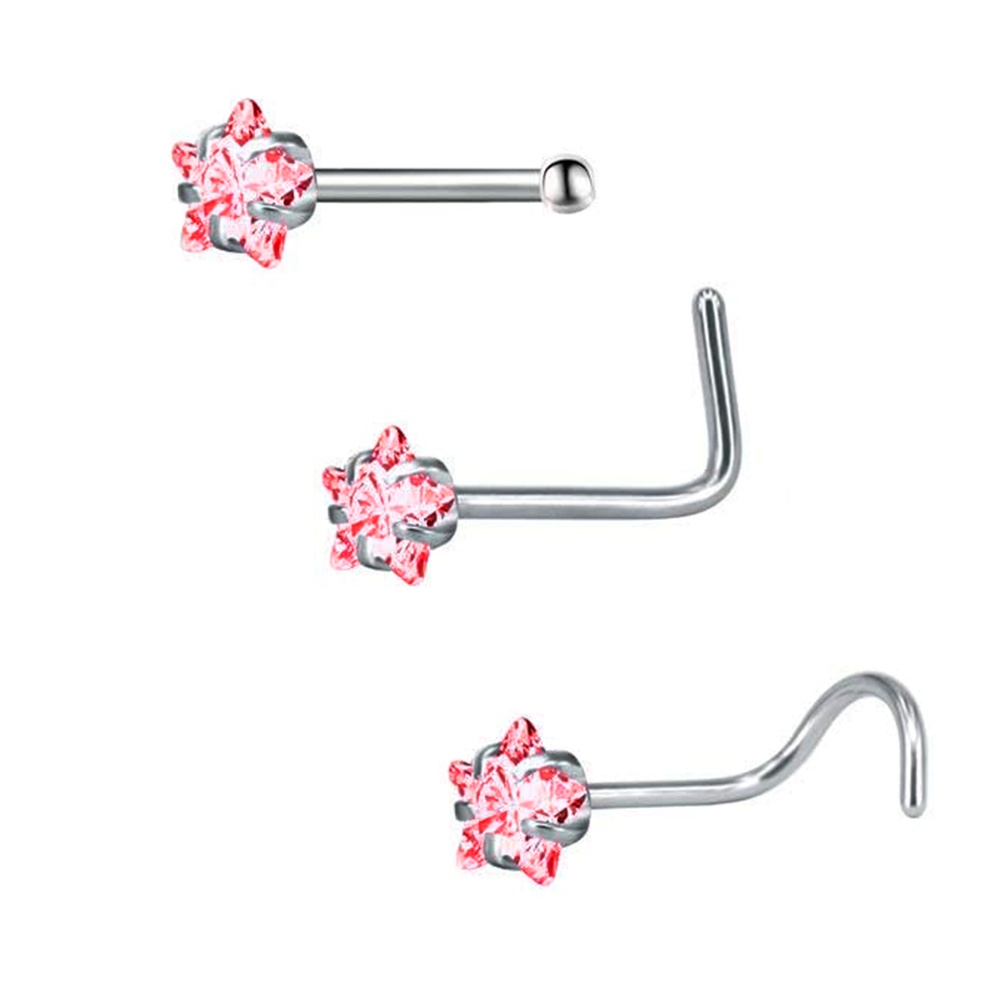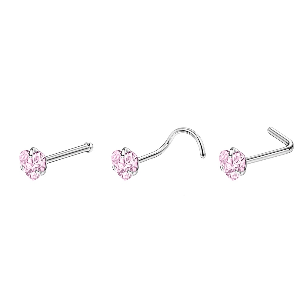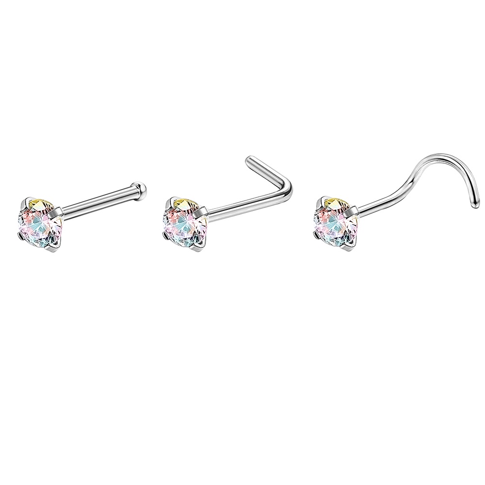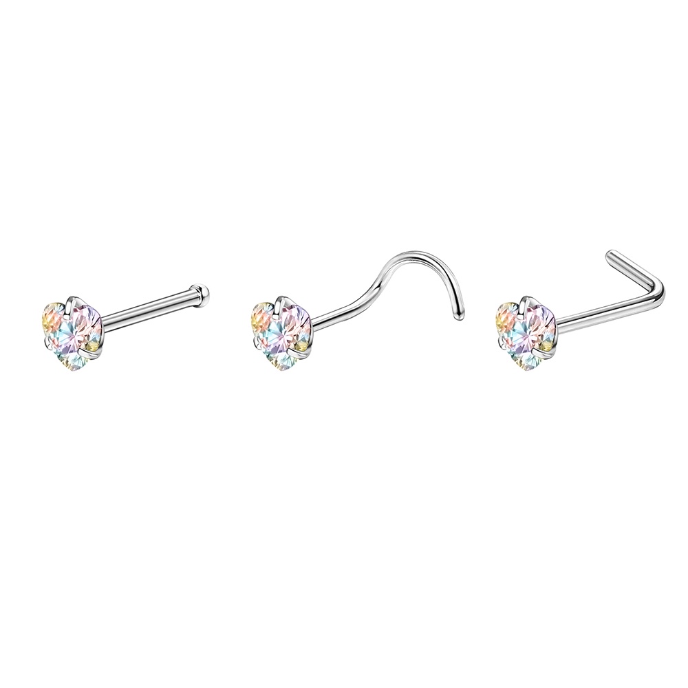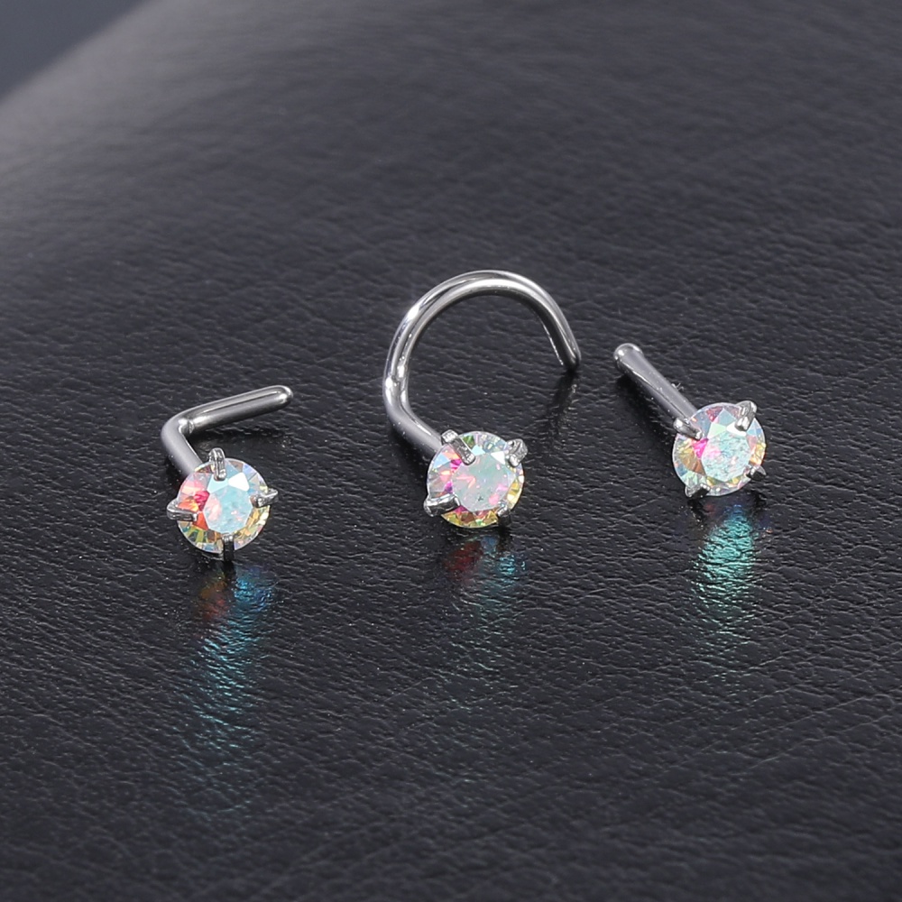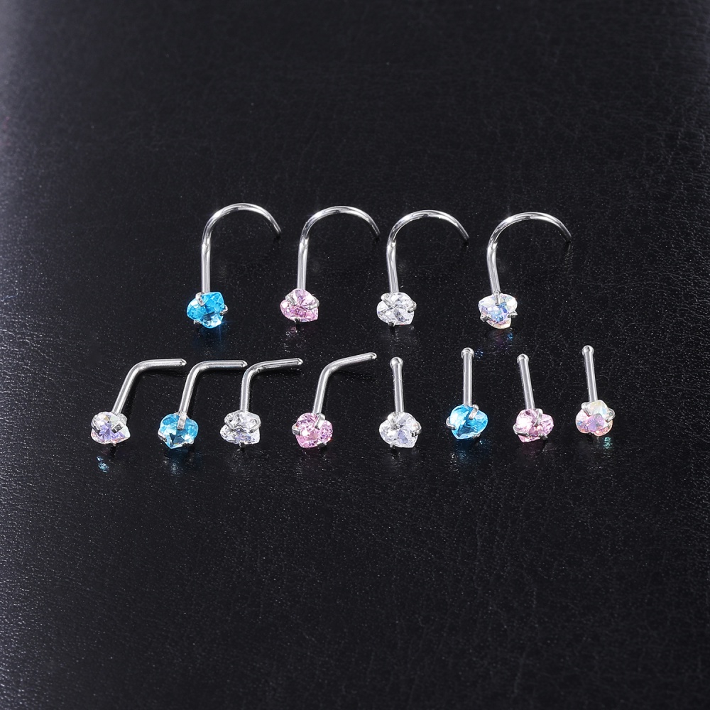 1 Pc Color Crystal Stainless Steel Nose Piercings Round Heart Star Cz Crystal Nose Stud L Shape Nostril Piercing Jewelry 20G