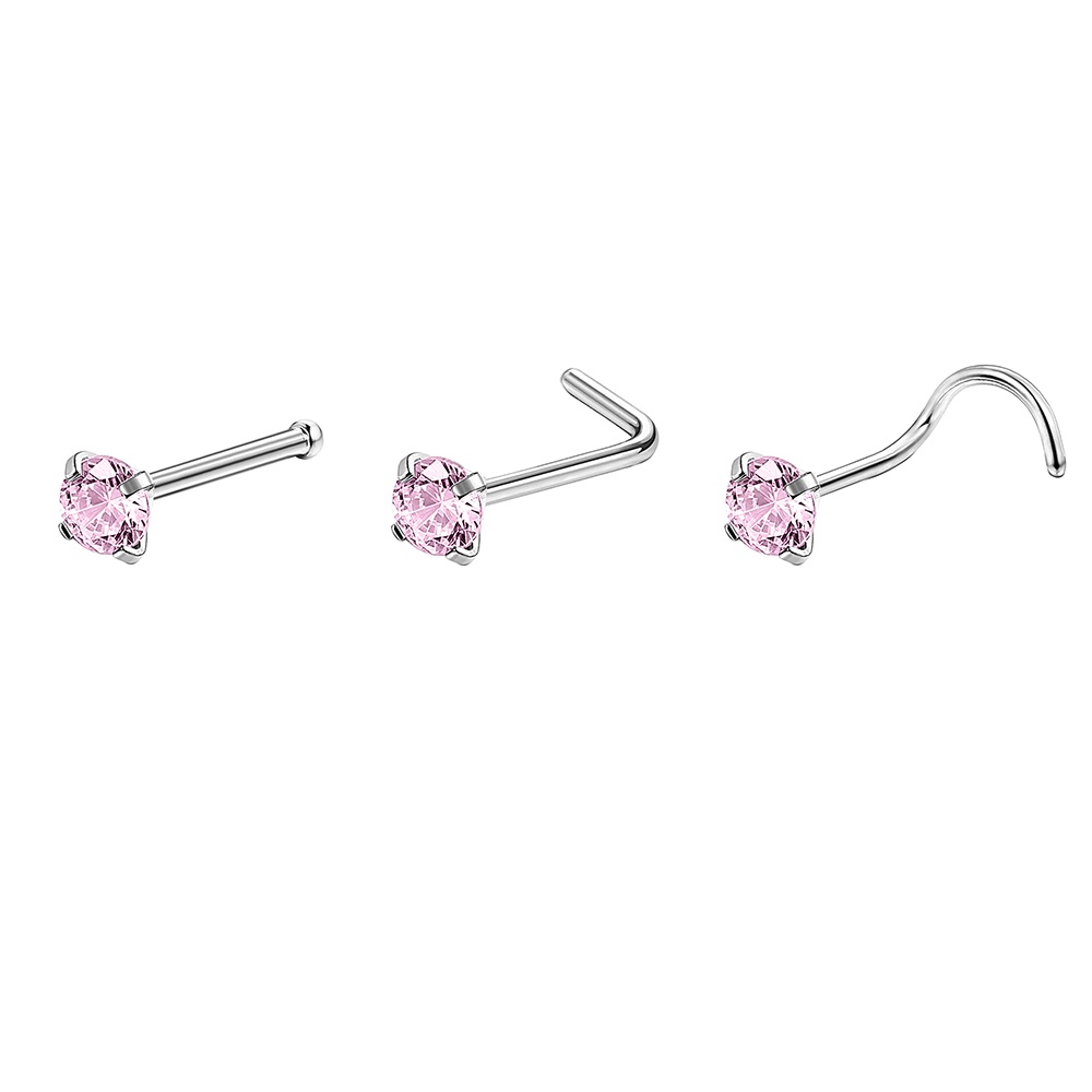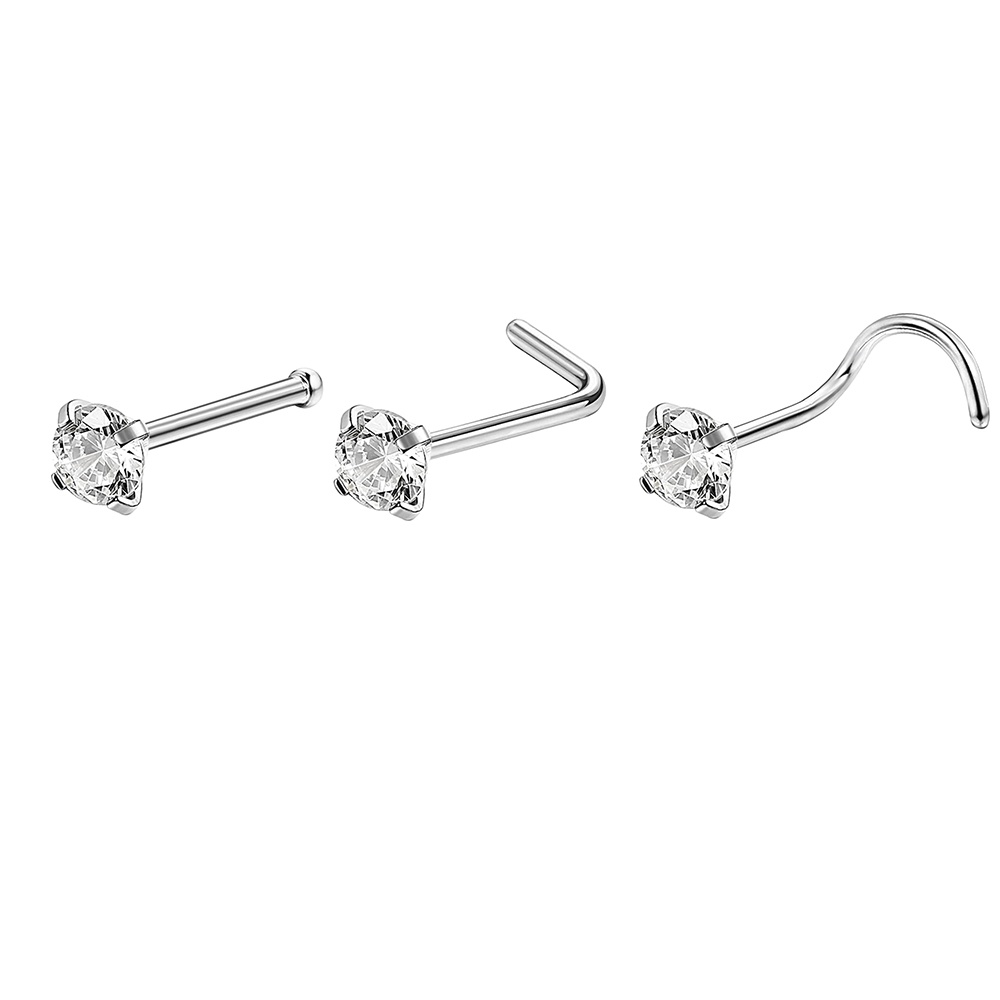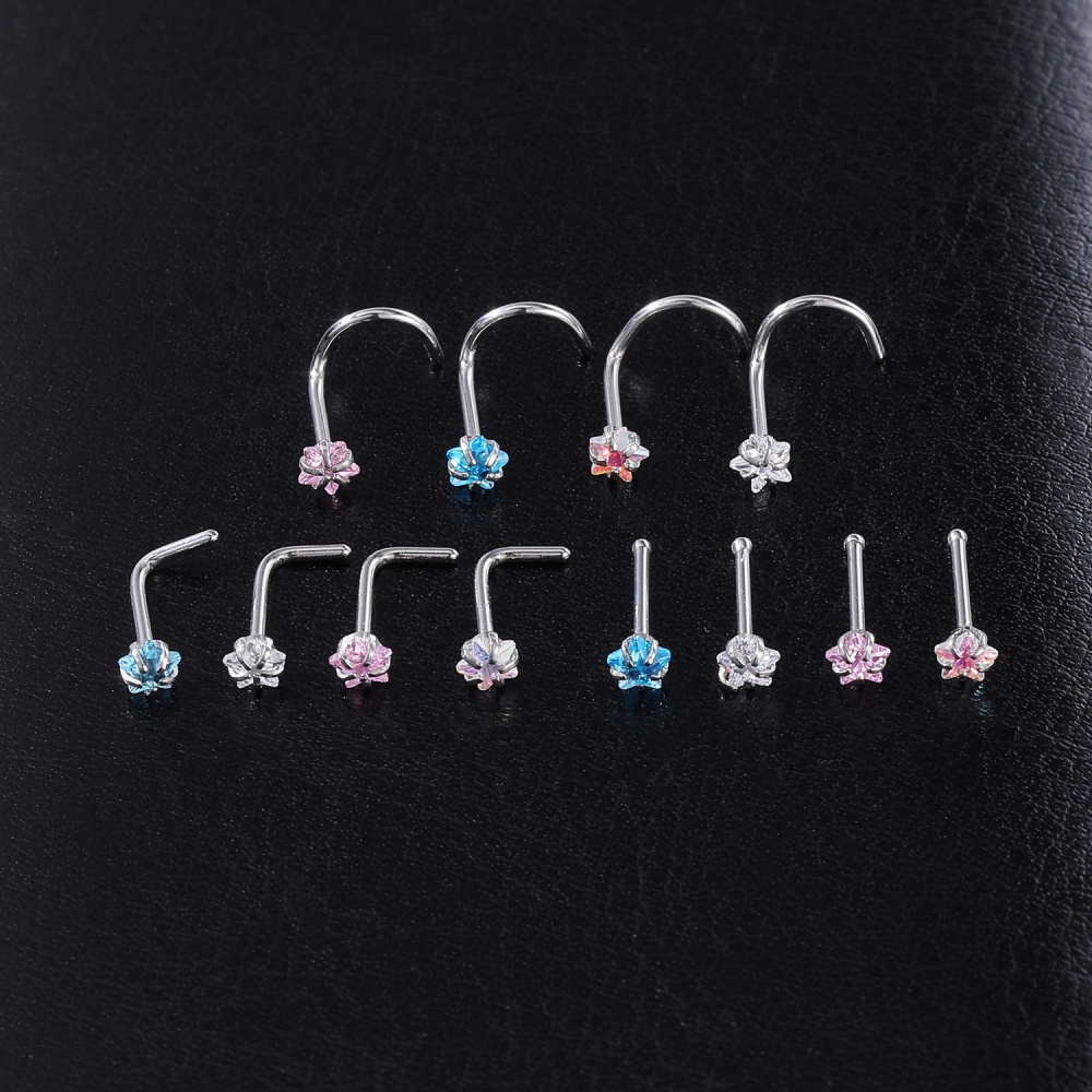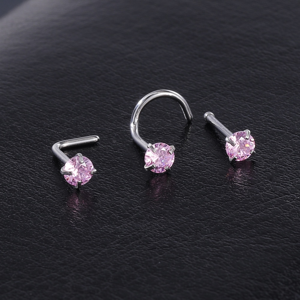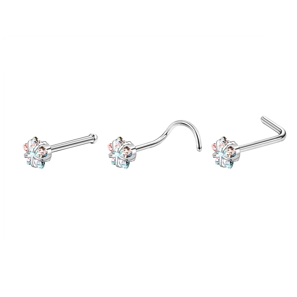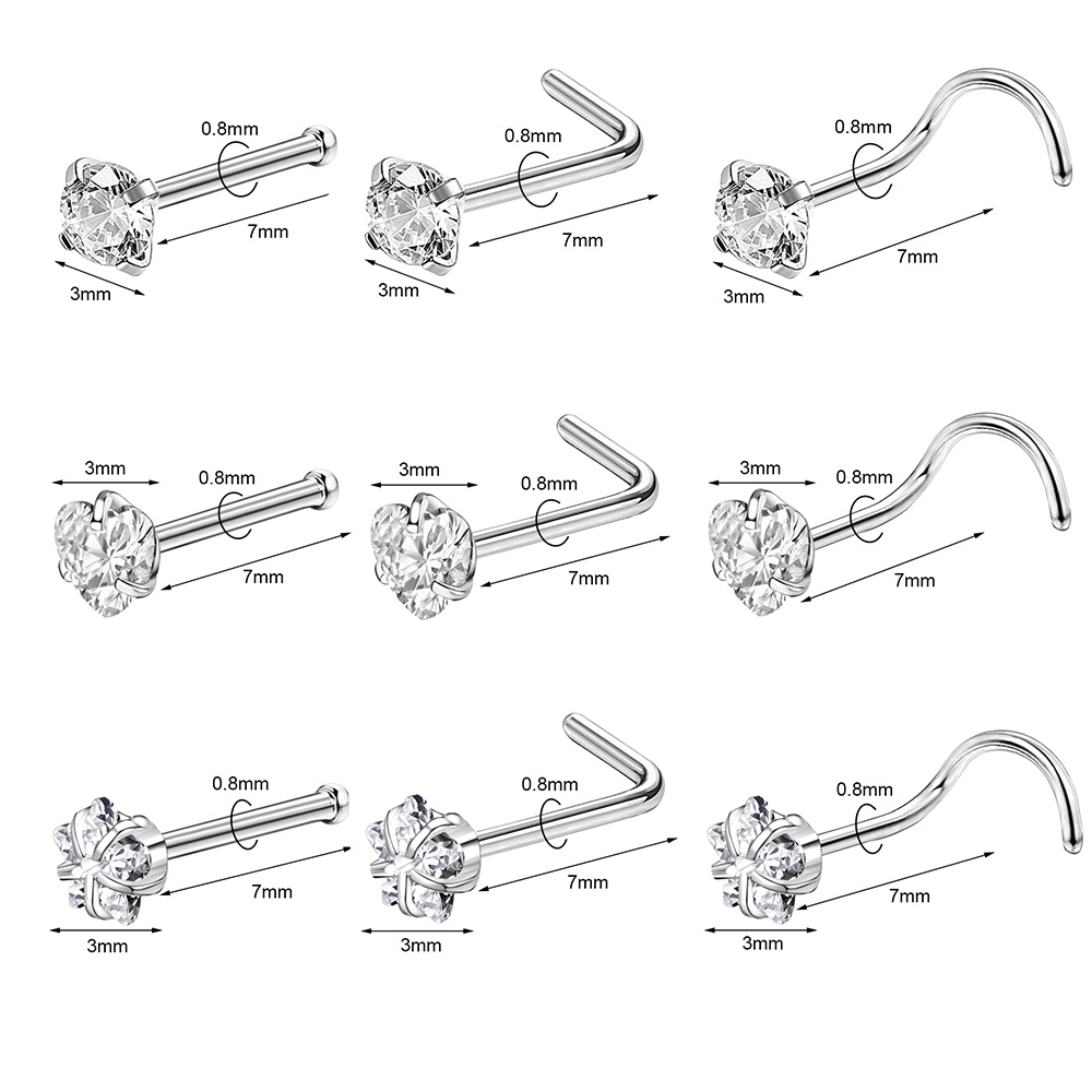 1 Pc Color Crystal Stainless Steel Nose Piercings Round Heart Star Cz Crystal Nose Stud L Shape Nostril Piercing Jewelry 20G