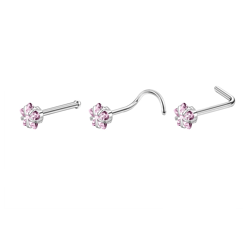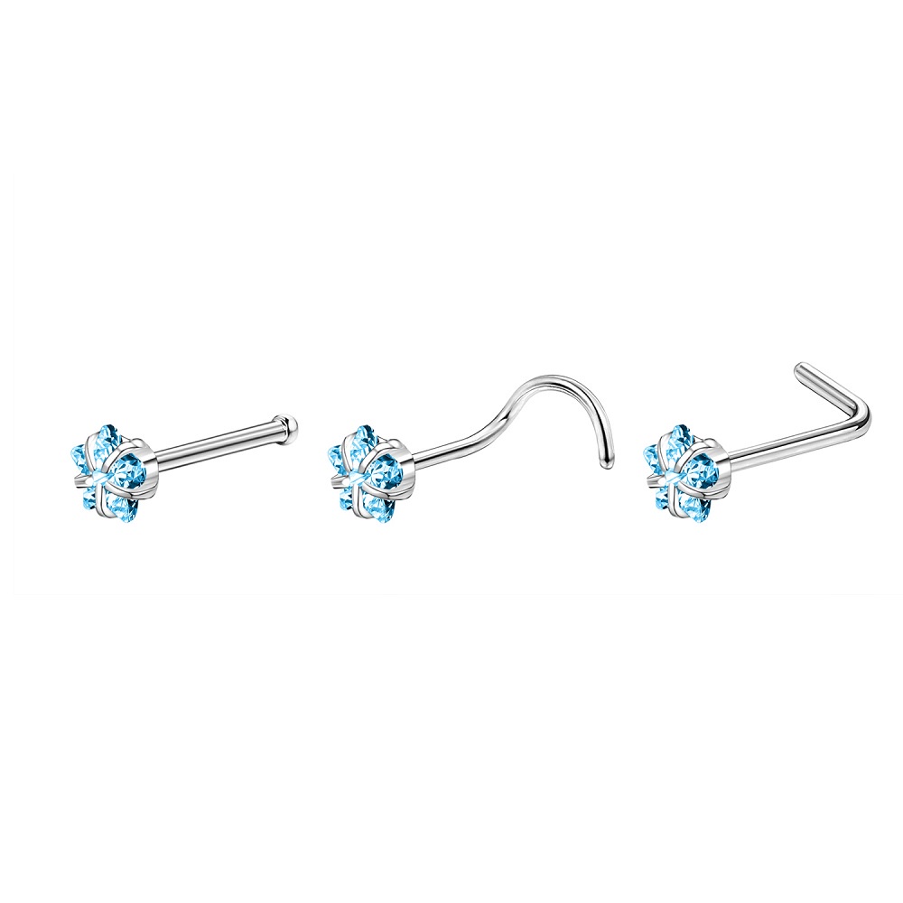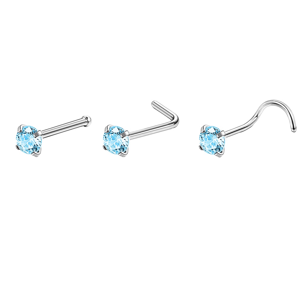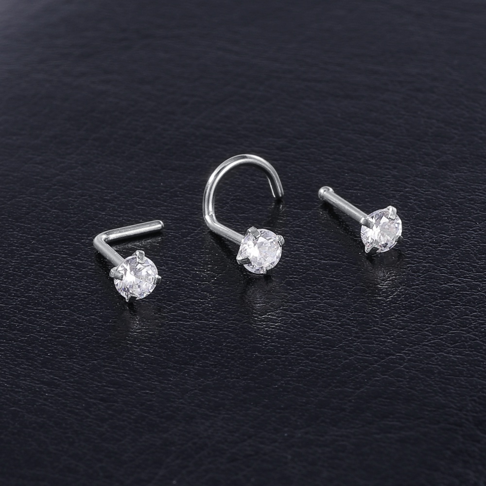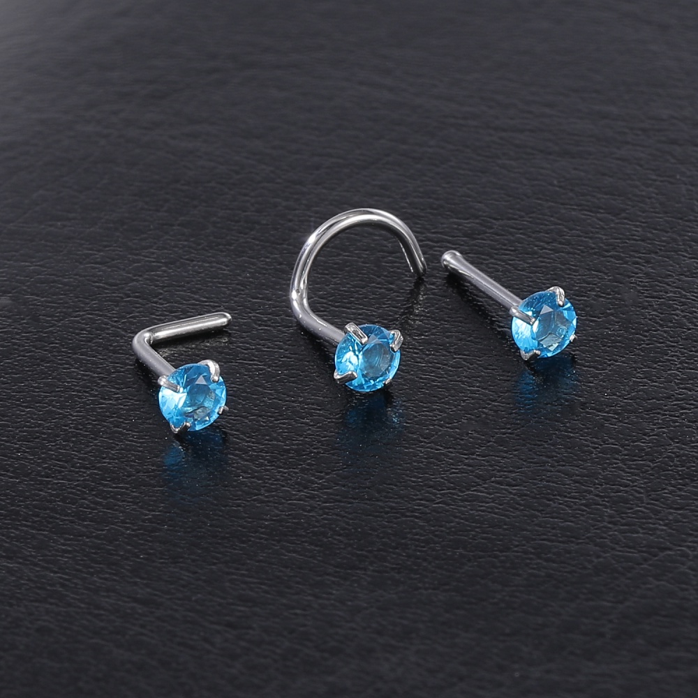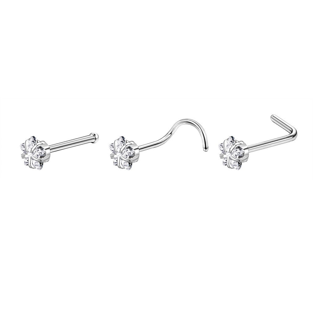 1 Pc Color Crystal Stainless Steel Nose Piercings Round Heart Star Cz Crystal Nose Stud L Shape Nostril Piercing Jewelry 20G