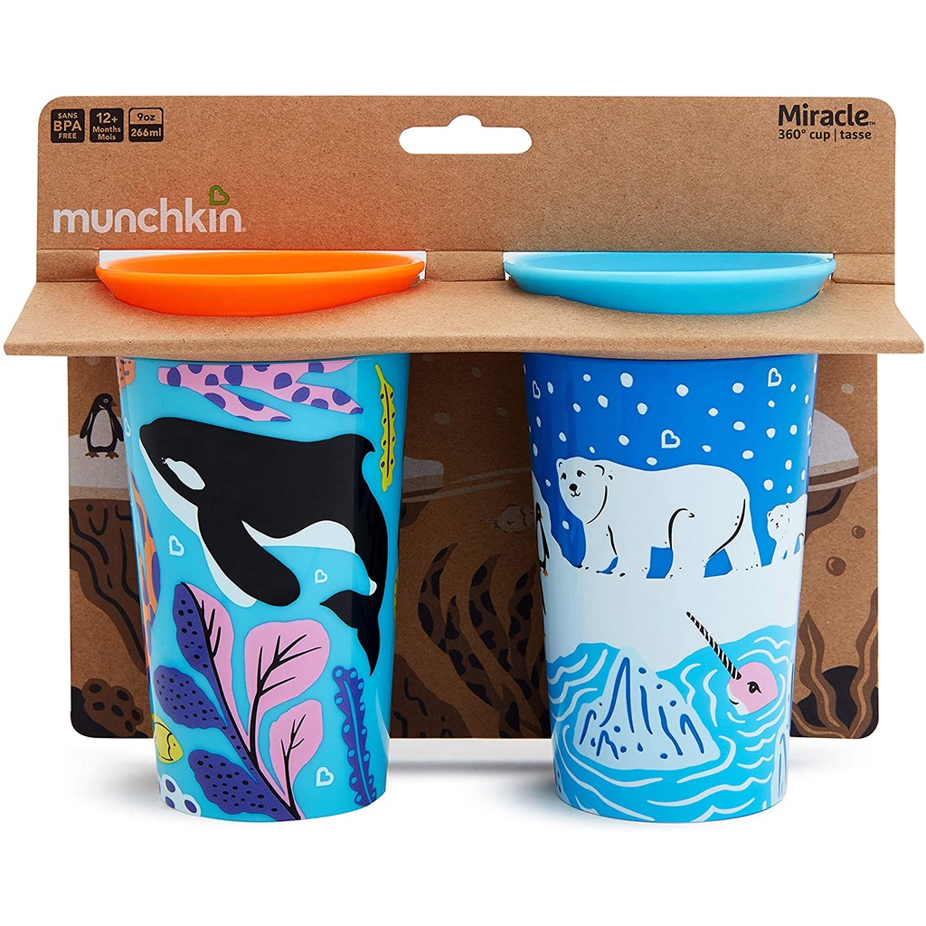 Munchkin Miracle 360 WildLove Sippy Cup, 9 oz / 266 ml, Polar Bear/Orca