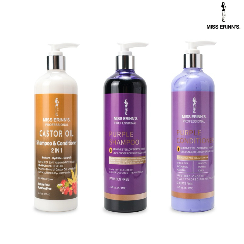 MISS ERINN'S Purple Shampoo & Conditioner Anti-yellow, For Blonde, Bleached, & Silver Hair (250ml)