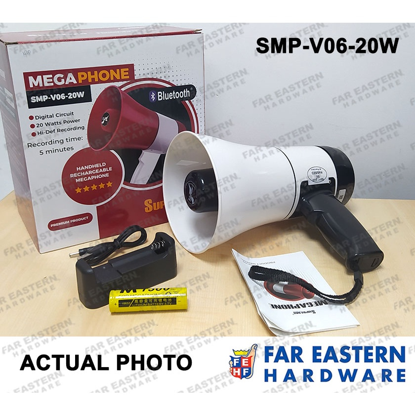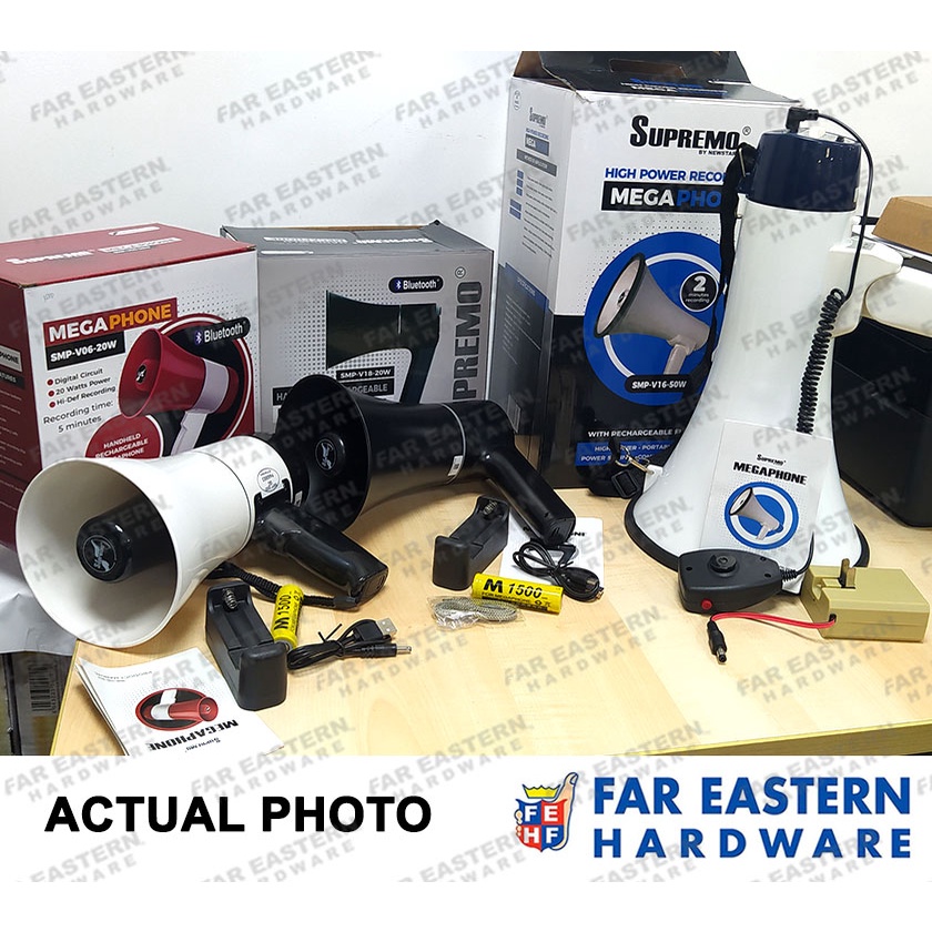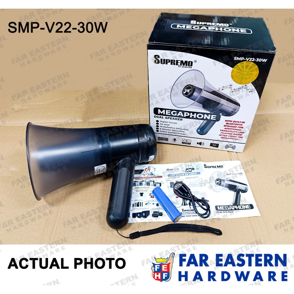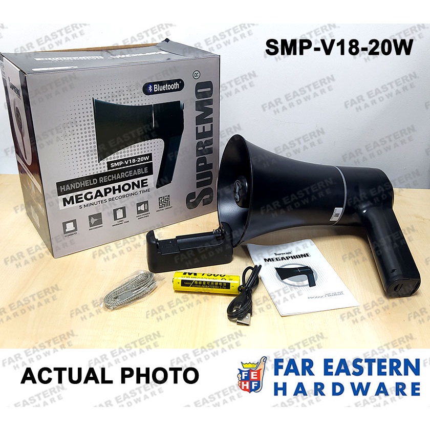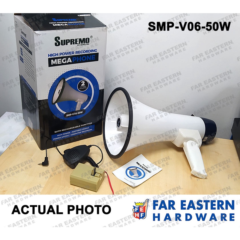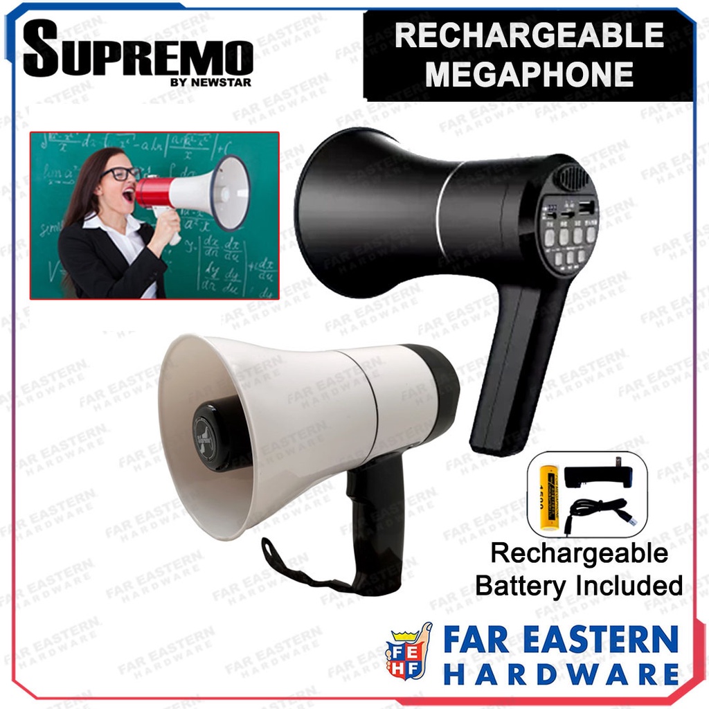 SUPREMO Hand Held Rechargeable Megaphone Speaker with Lithium Ion Battery & Charger