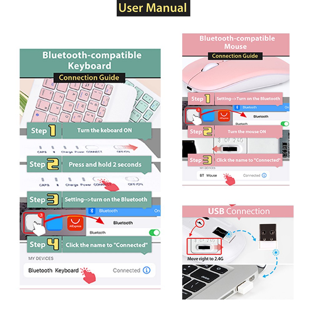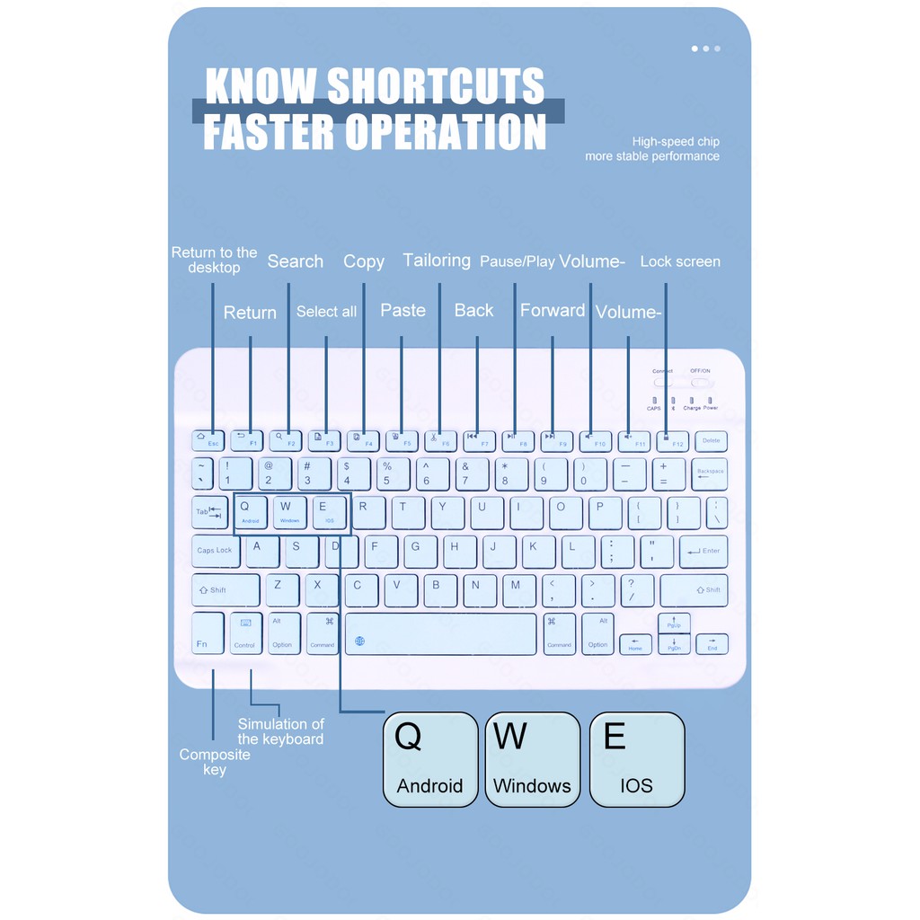 GOOJODOQ Wireless Bluetooth Keyboard and Mouse Set for Laptop Tablet Pad Phone Colorful Lightweight Portable 7/10 inch