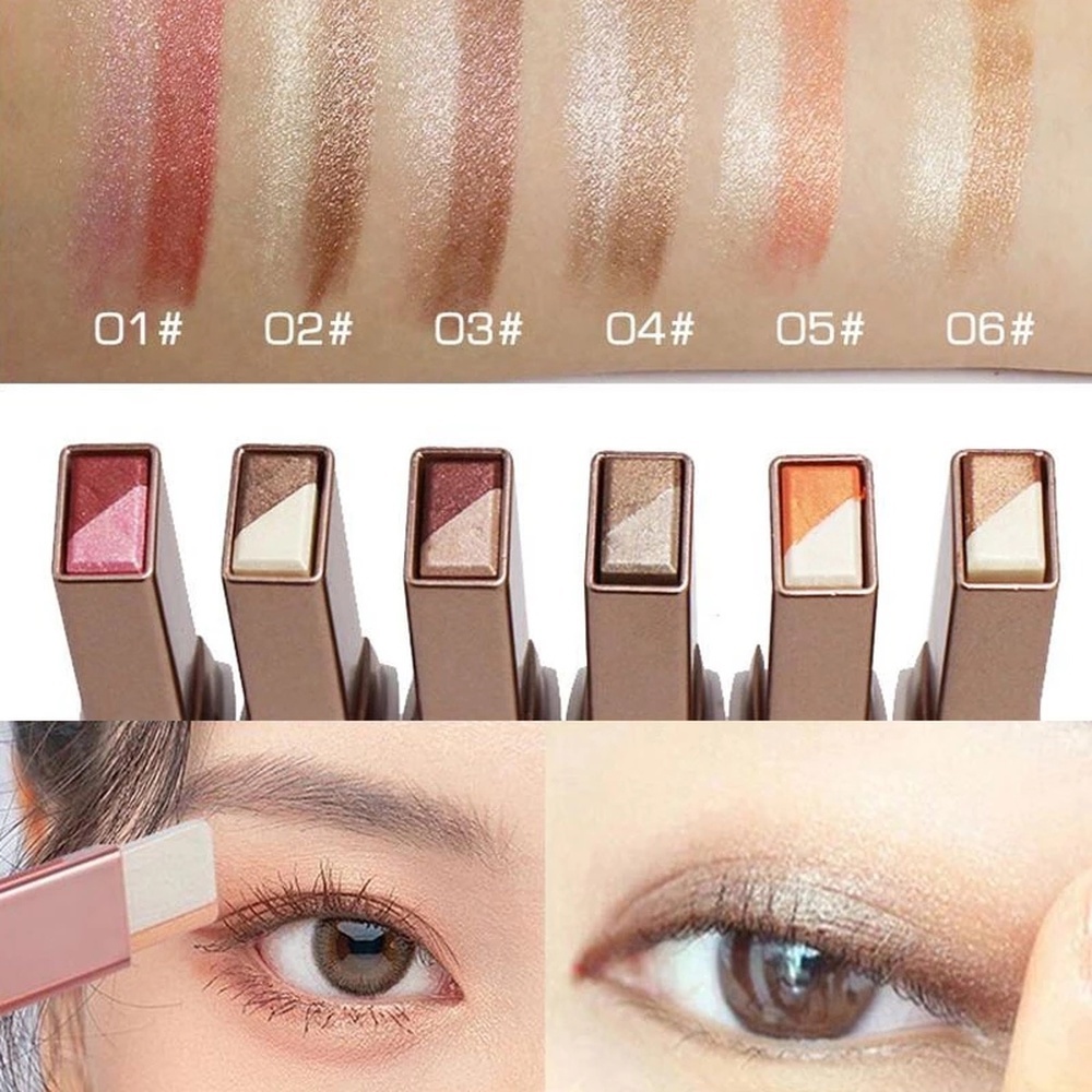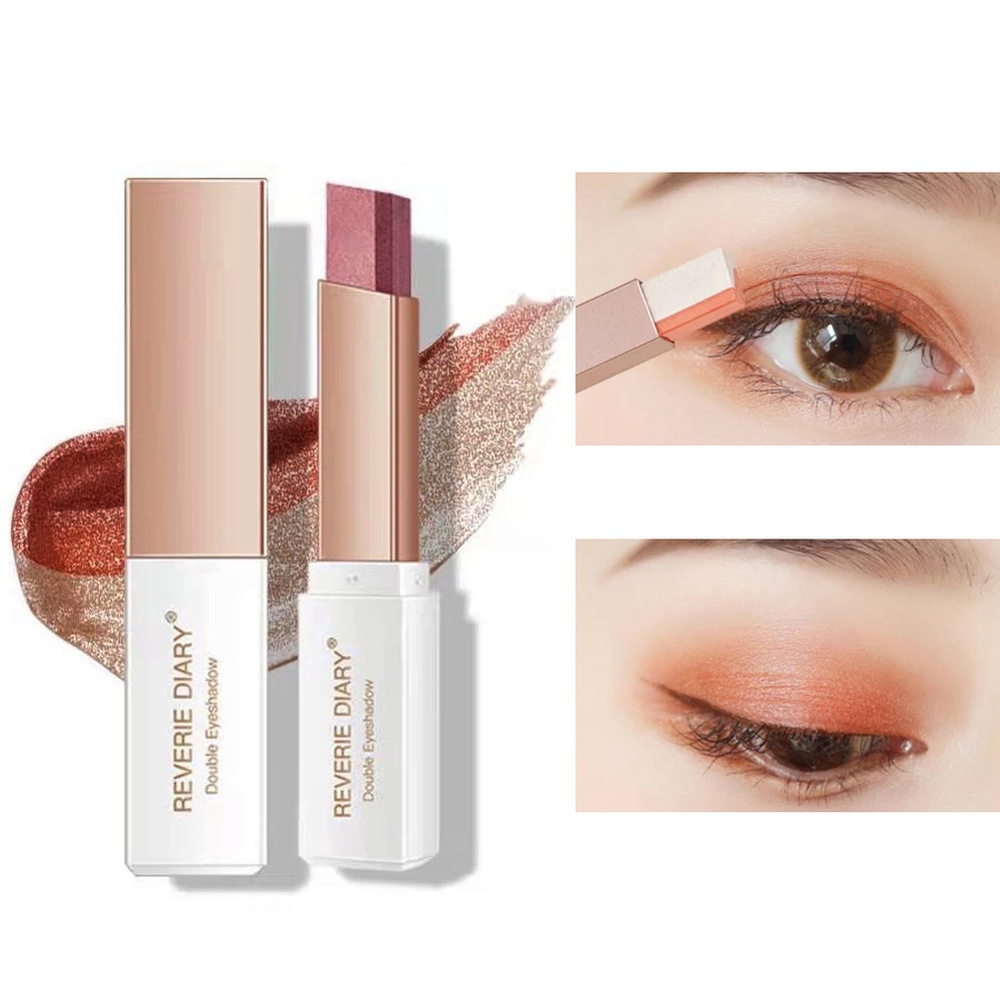 Waterproof Bling Double Color Gradient Velvet Eye Makeup Shadow Stick Mix Glitter Matte Eyeshadow Pallete Pen Dual Color Shadow