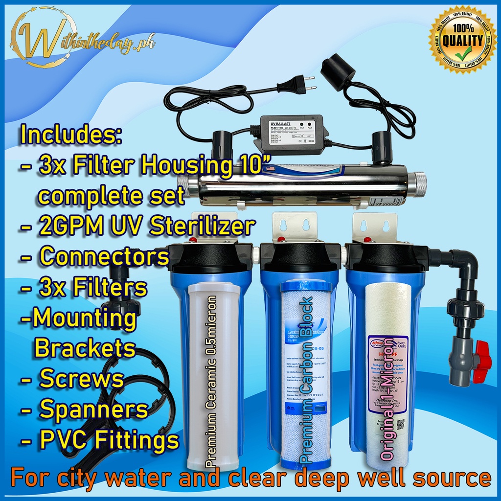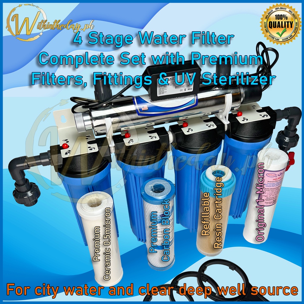 Drinking 3 4 Stage Filter Complete Set Housing Absolute Filtration 0.5 Micron for Mineral UV nawasa