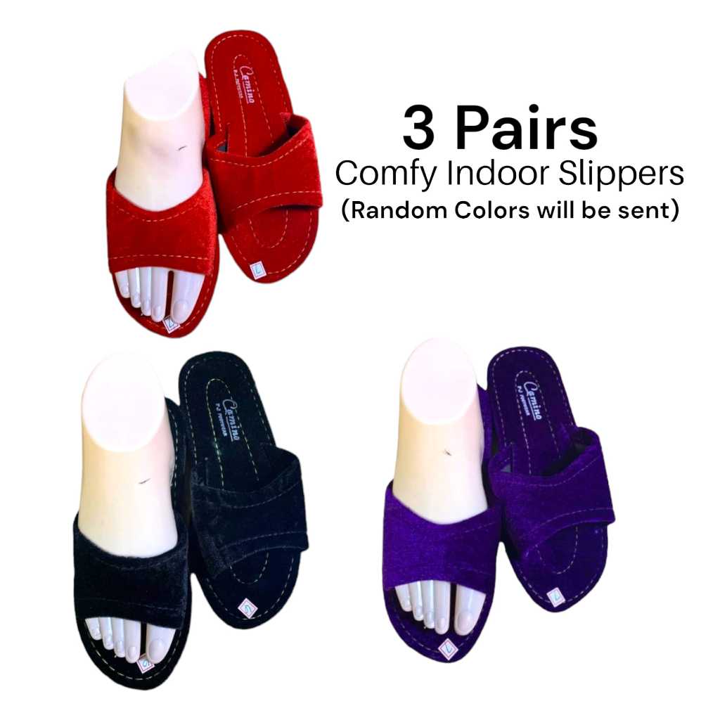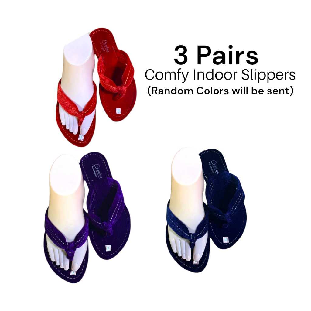 3 PAIRS VELVET ALPOMBRA TSINELAS PAMBAHAY MAKAPAL | INDOOR SLIPPERS