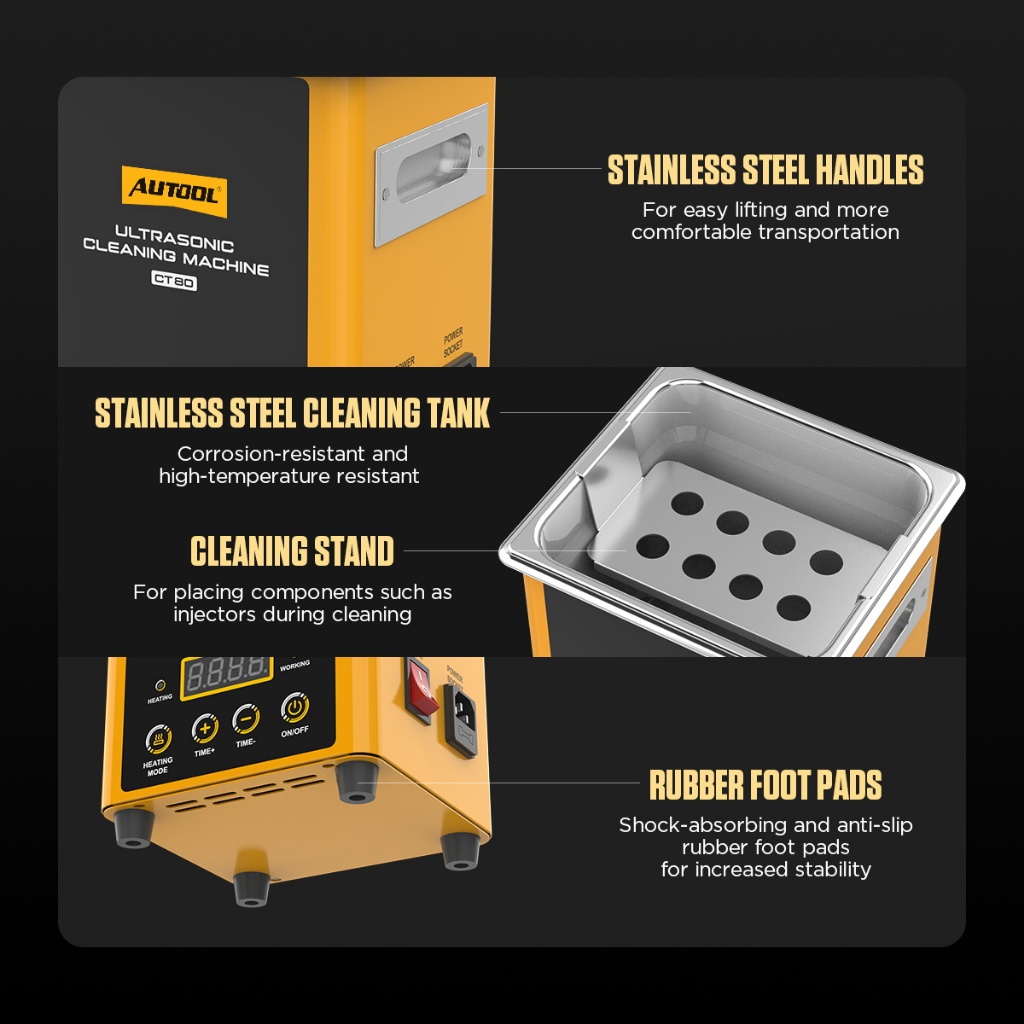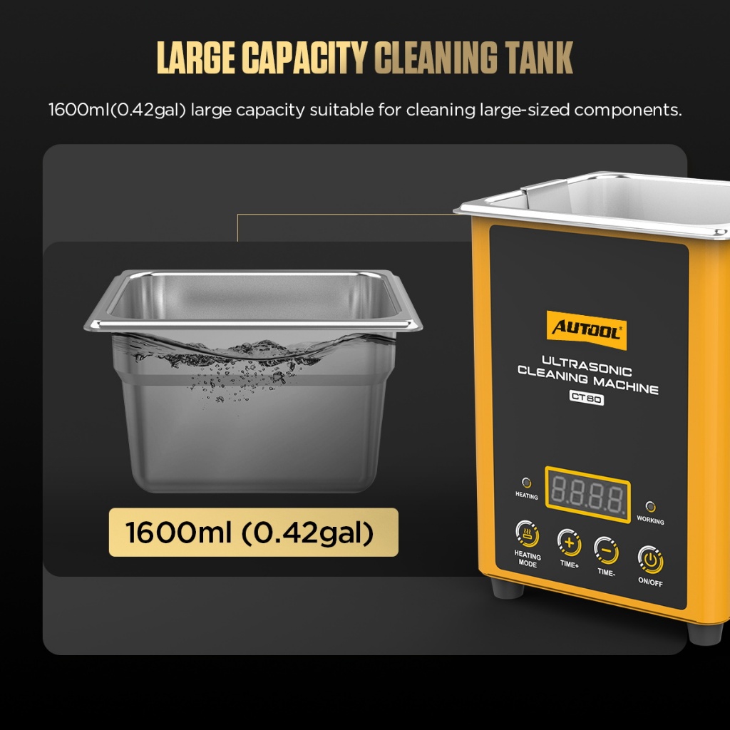AUTOOL CT80 ultrasonic Cleaning machine Automobile injector cleaning machine heating mode jewelry hardware parts Large capacity 1600ml