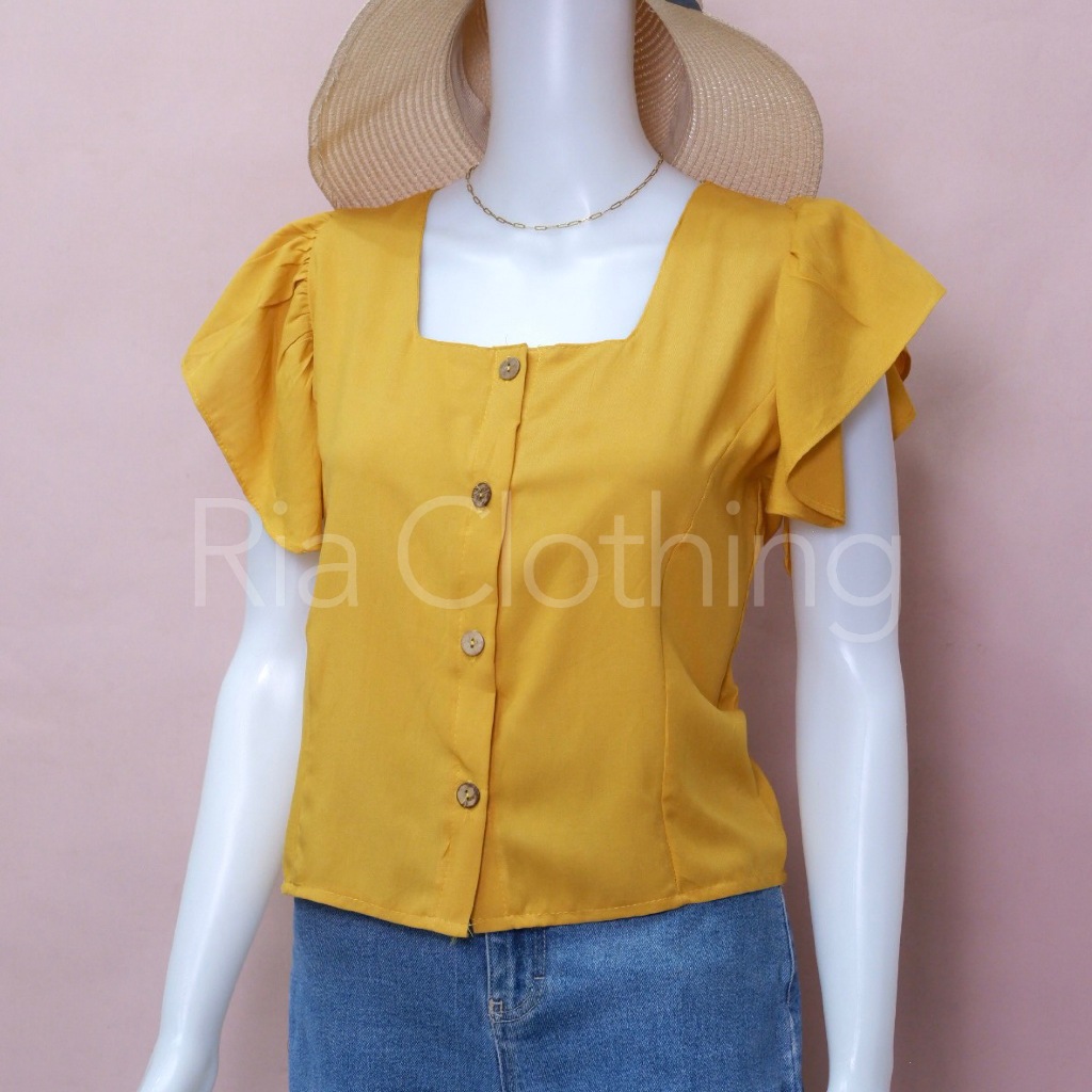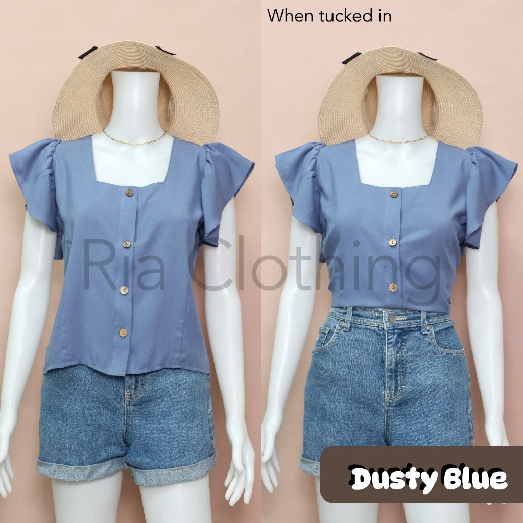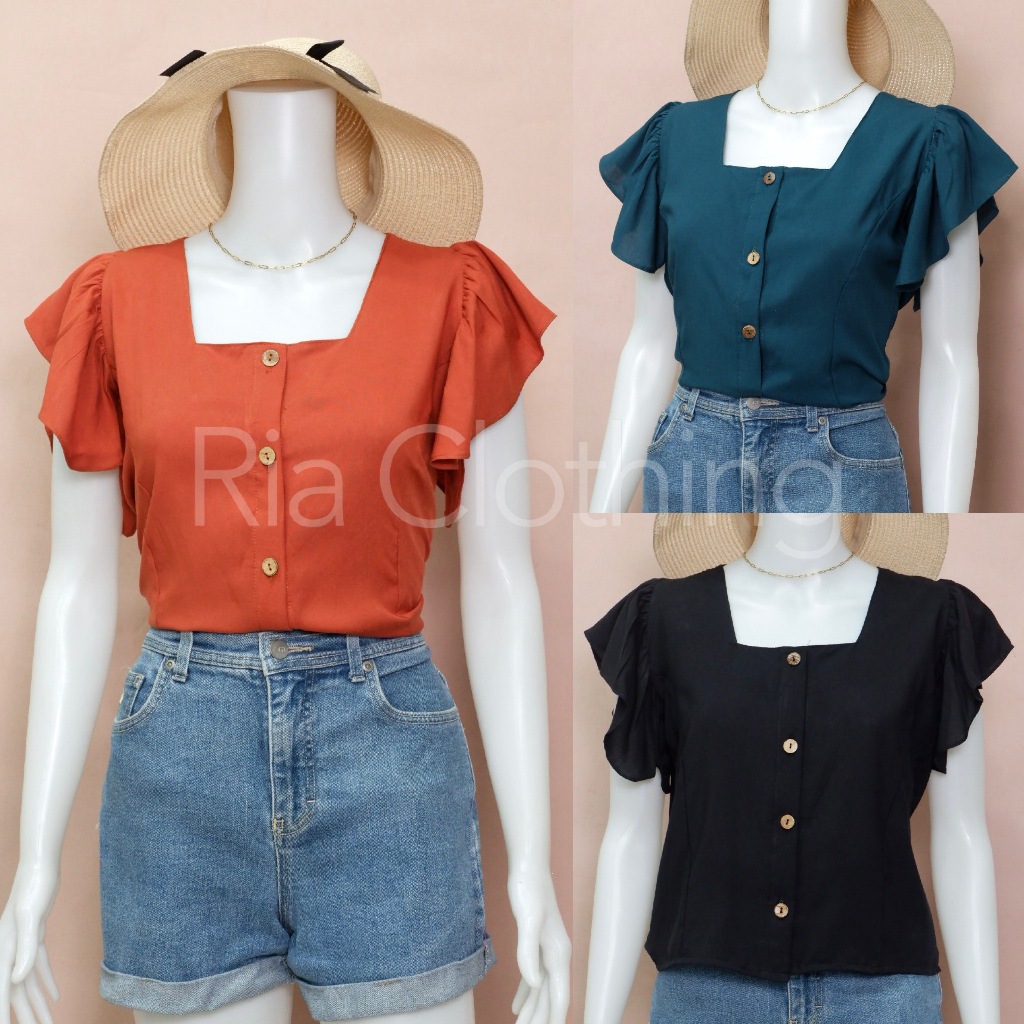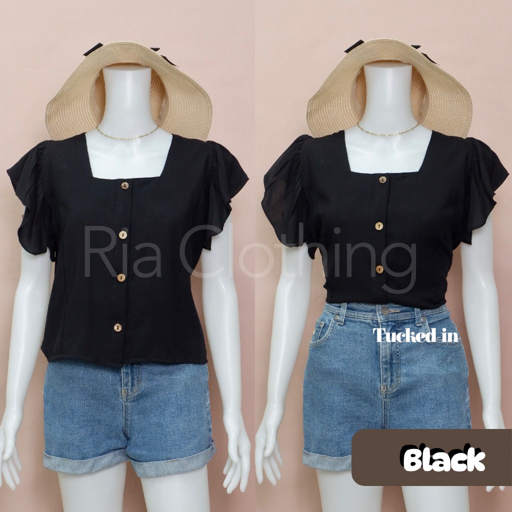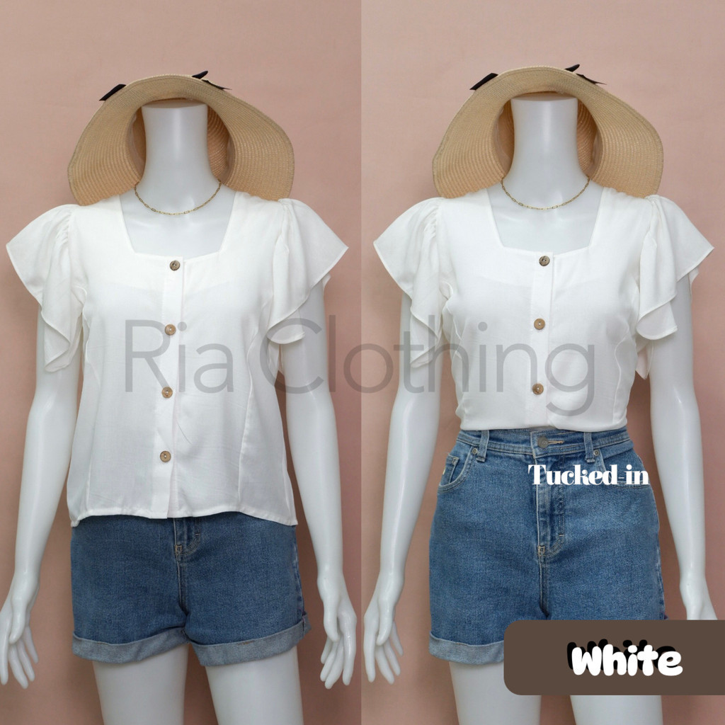 Denise Squareneck Butterfly Sleeves Button Blouse Korean BKK Trendy Top Women Office Outfit
