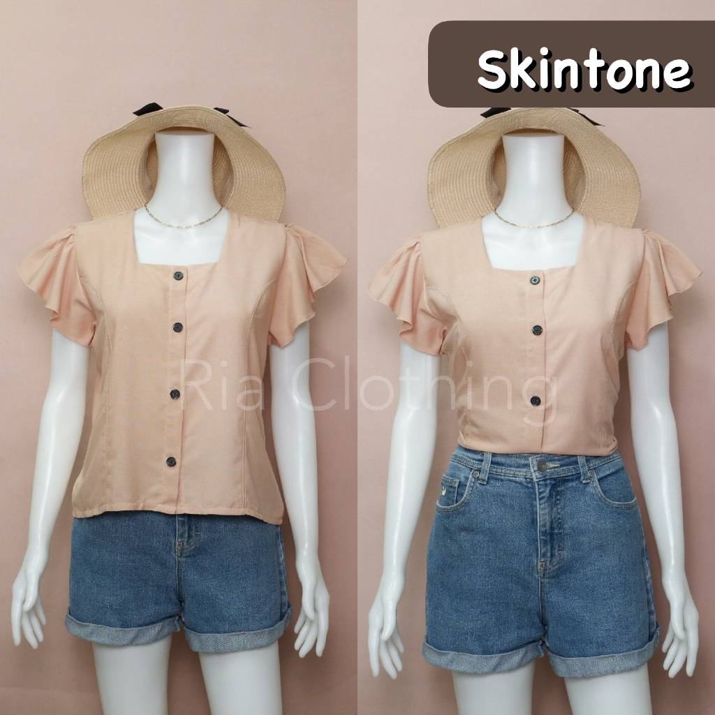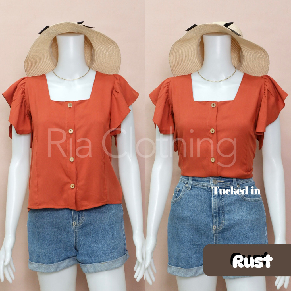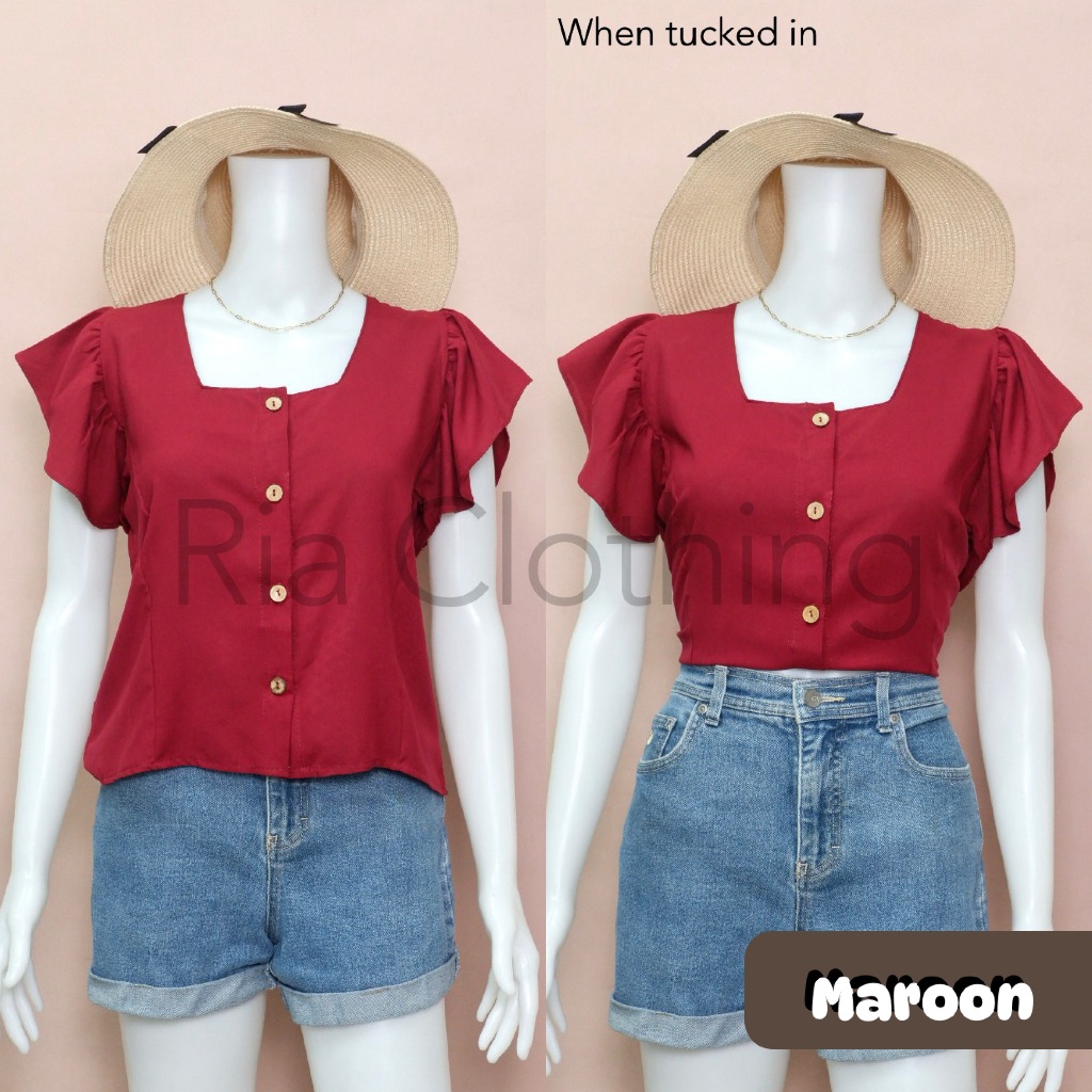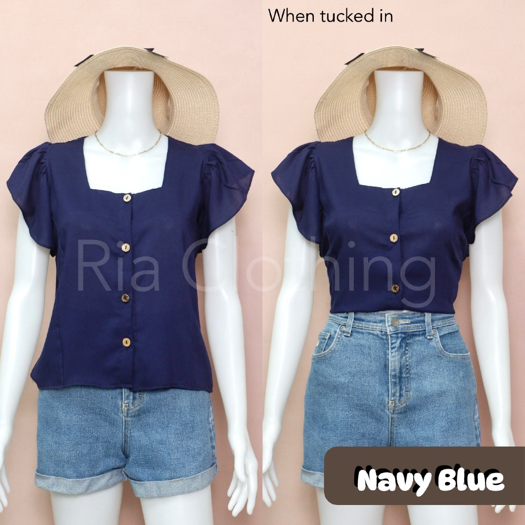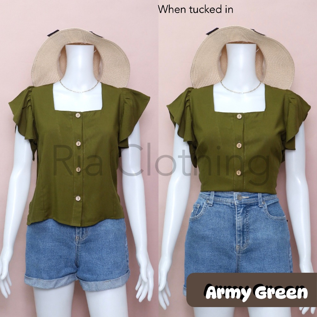 Denise Squareneck Butterfly Sleeves Button Blouse Korean BKK Trendy Top Women Office Outfit