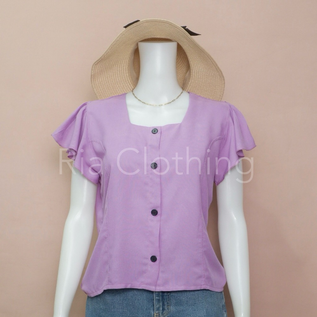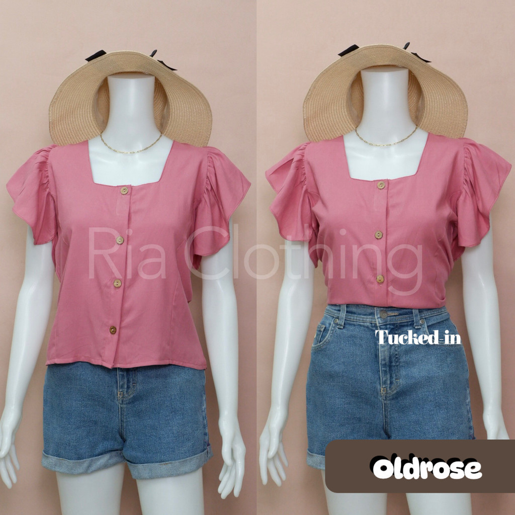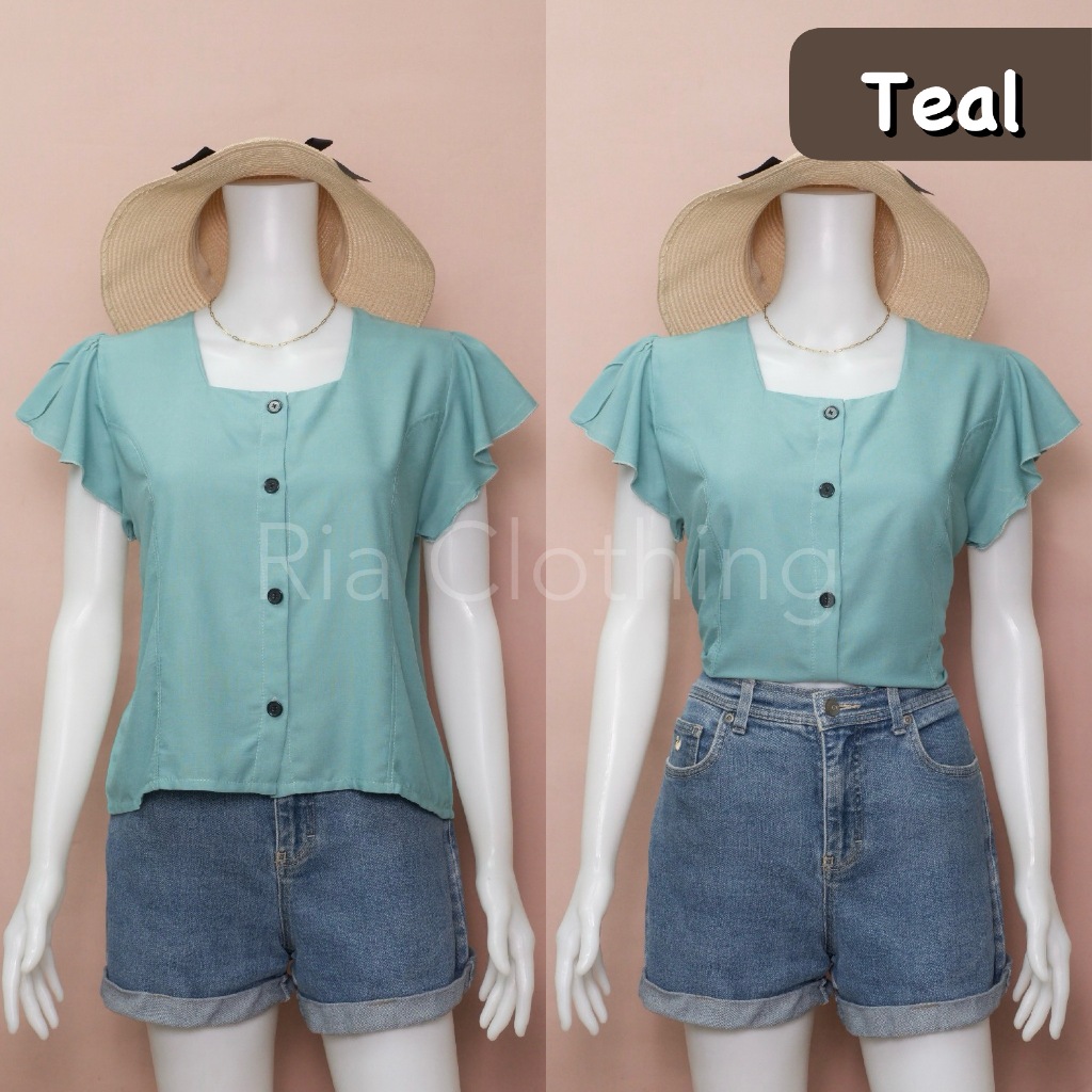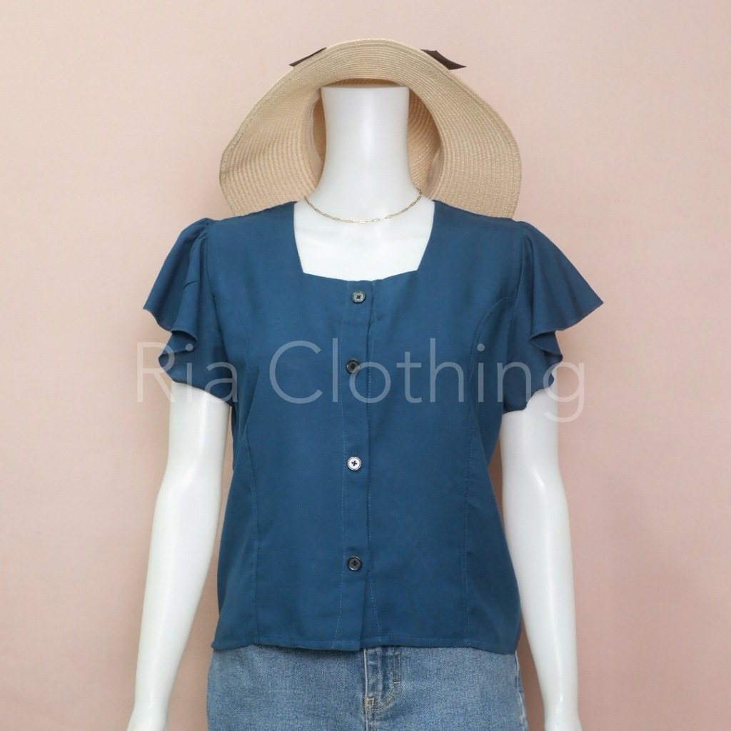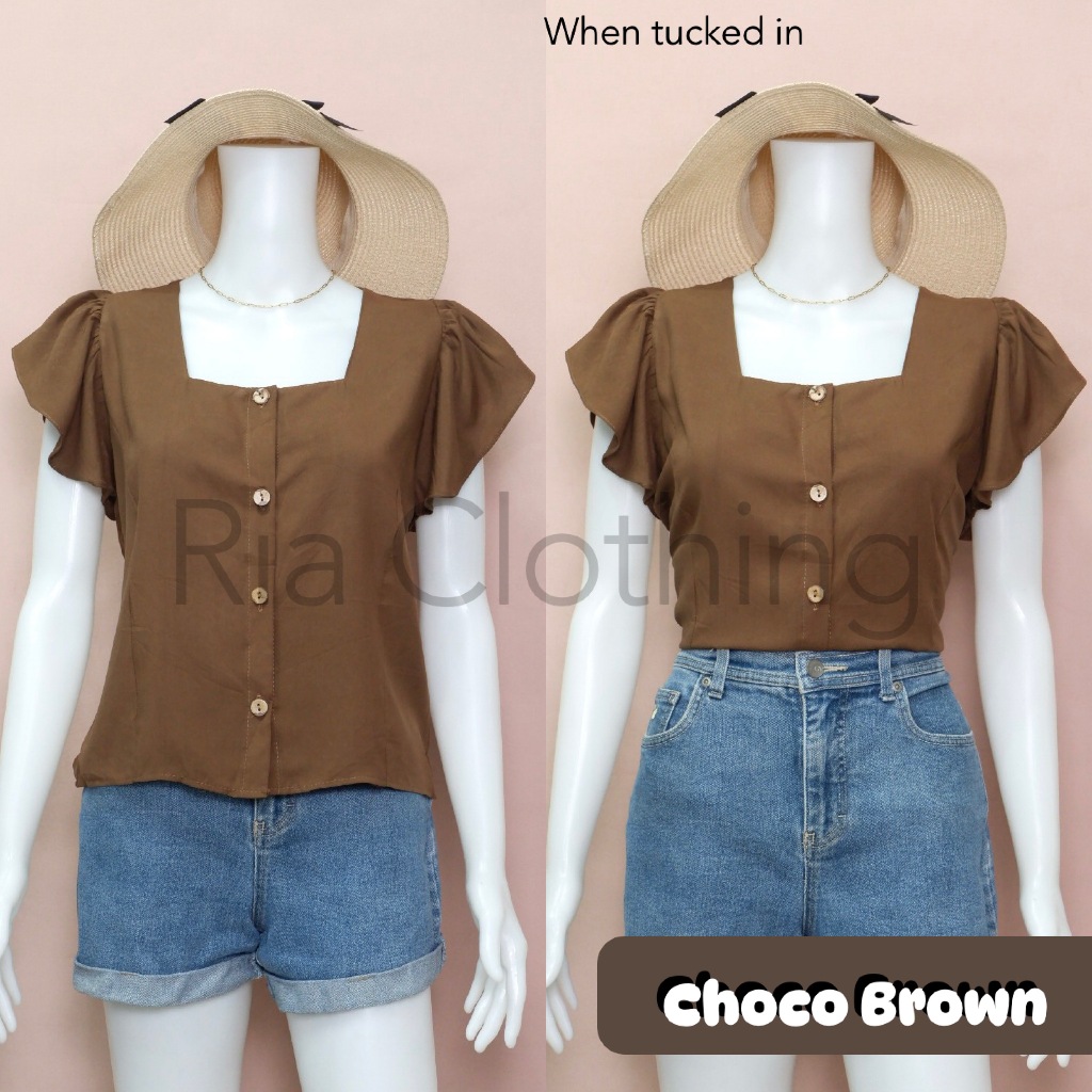 Denise Squareneck Butterfly Sleeves Button Blouse Korean BKK Trendy Top Women Office Outfit
