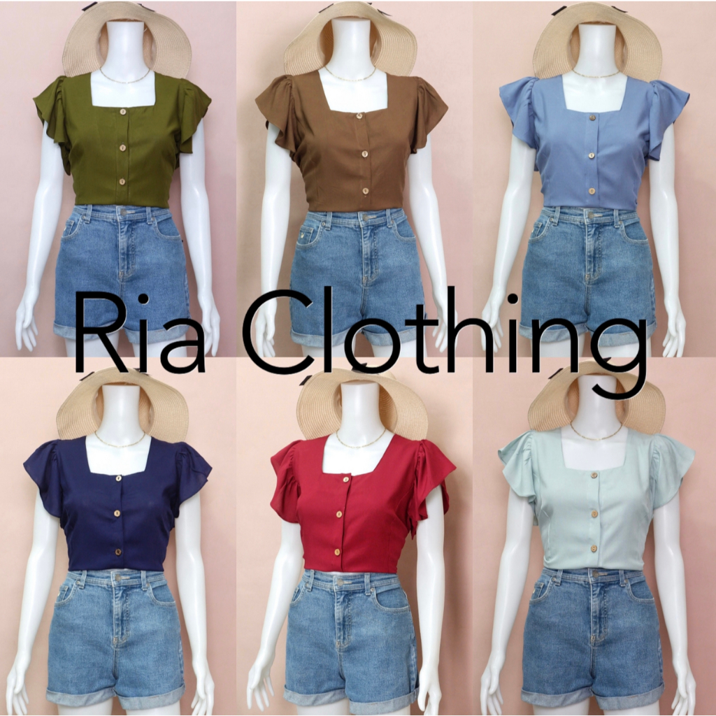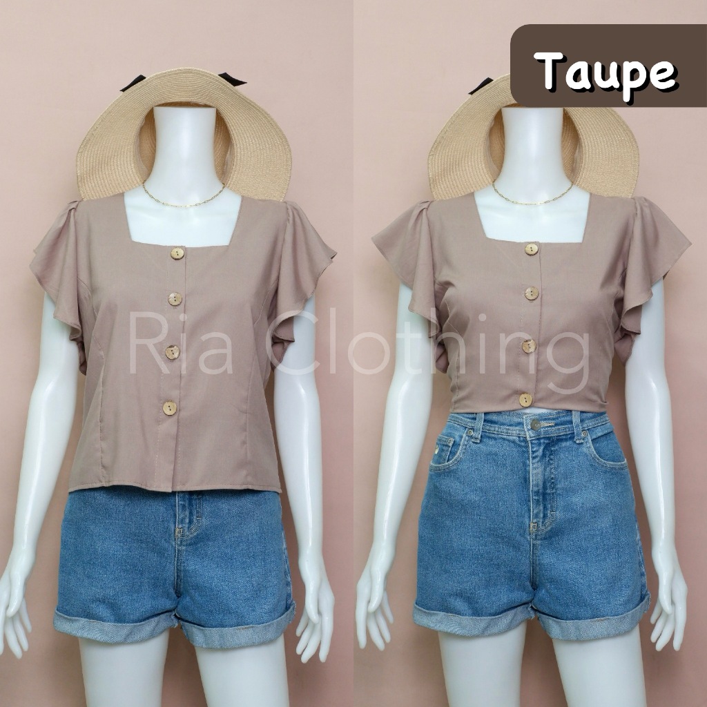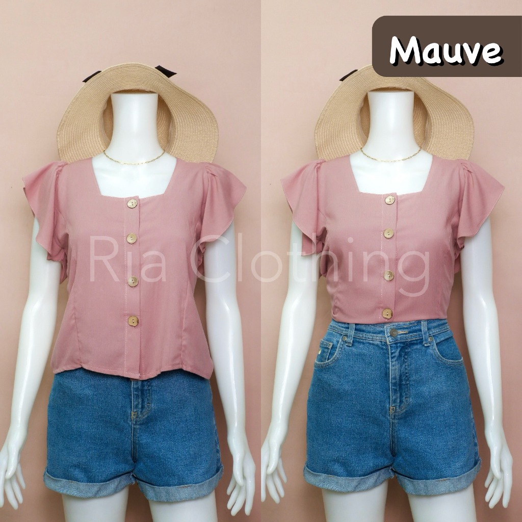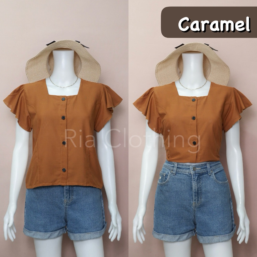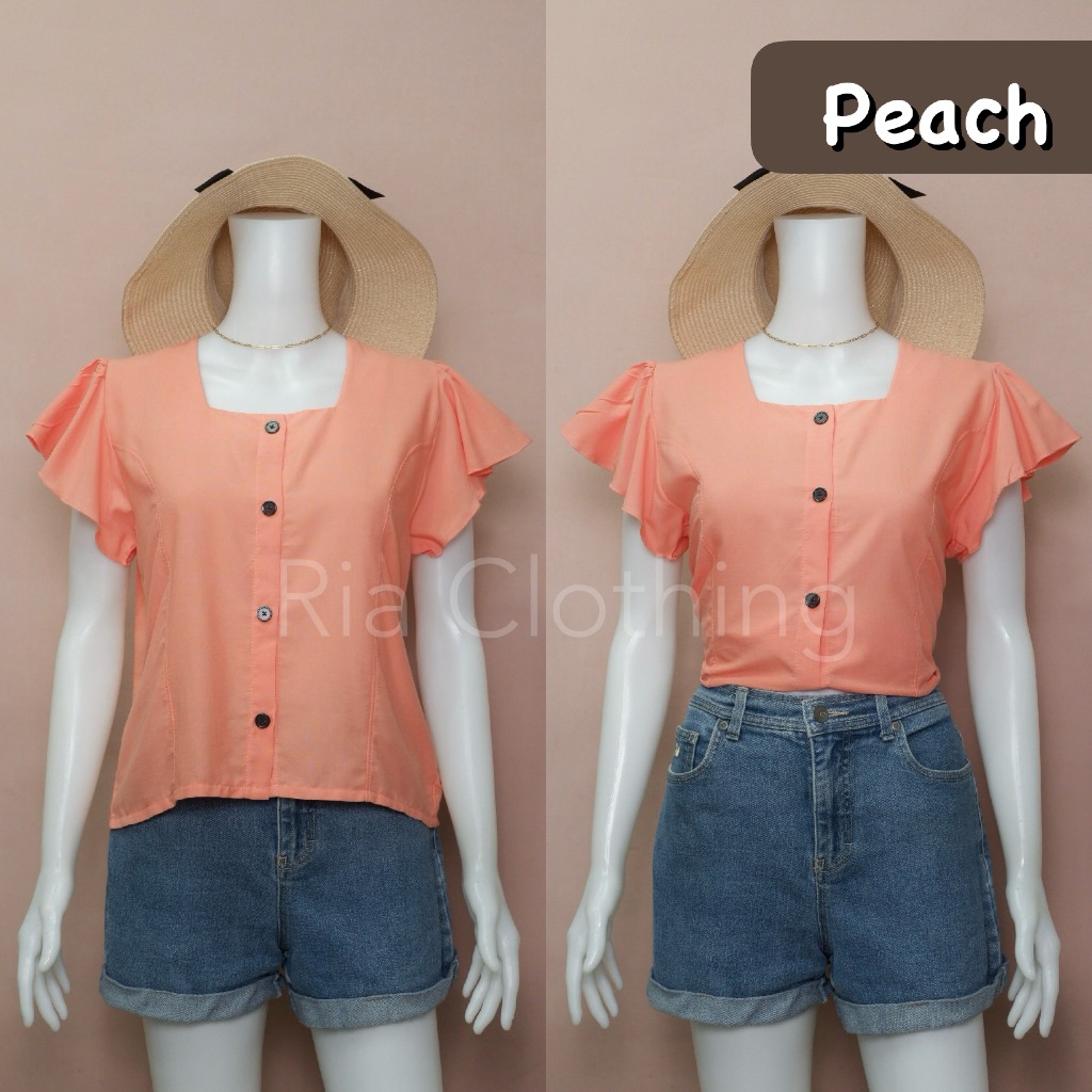 Denise Squareneck Butterfly Sleeves Button Blouse Korean BKK Trendy Top Women Office Outfit
