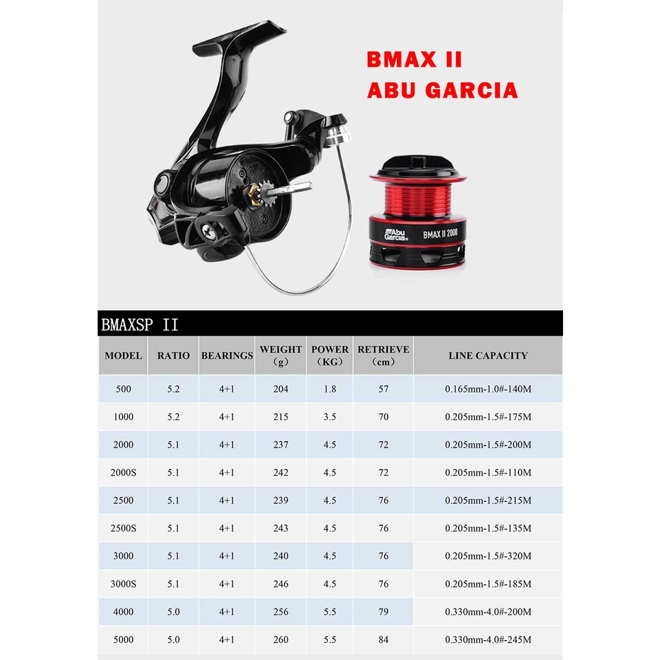 Abu Garcia BMAX II Spinning Reel Fishing Reels Right/Left Exchange 4+1BB Aluminum Spool Fishing Reel Max Drag 5.5kg
