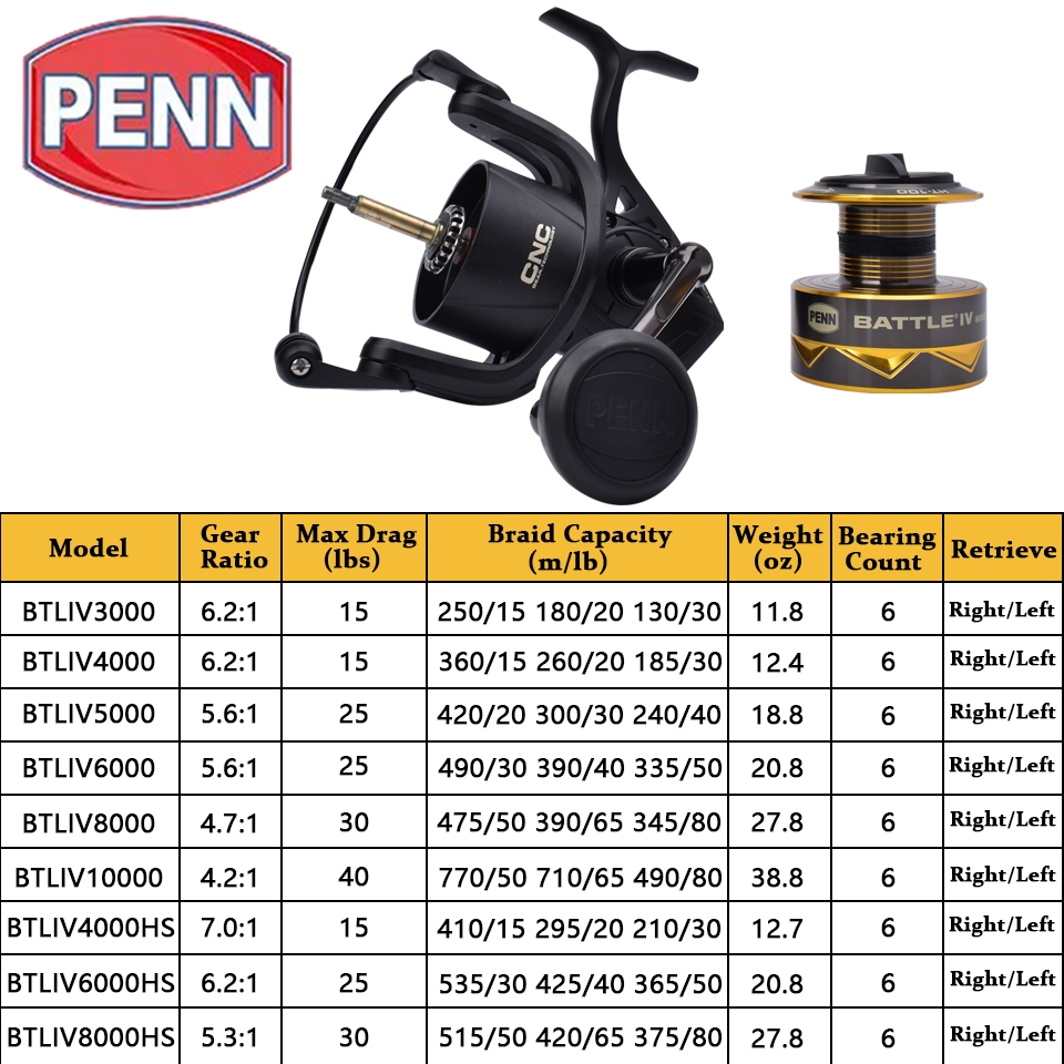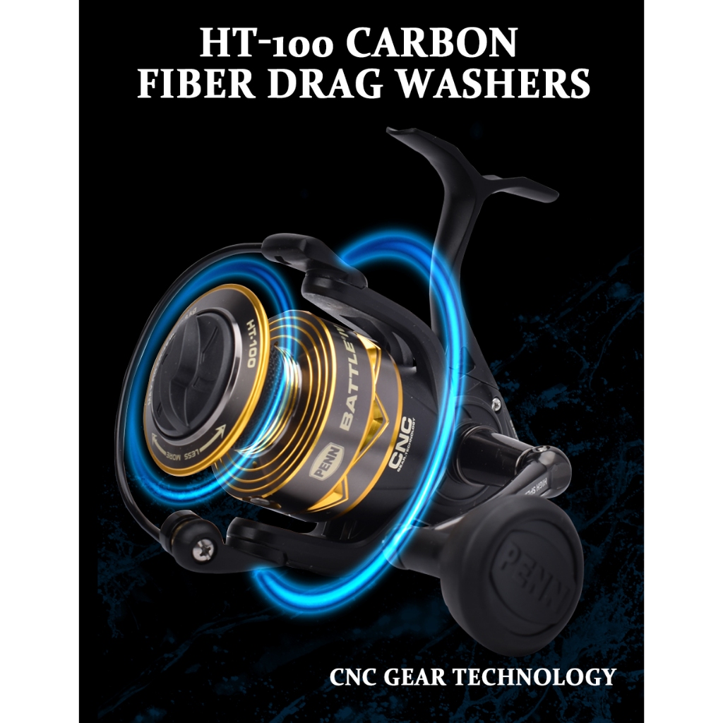 Penn Battle IV Spinning Fishing Reel - Saltwater & Freshwater | 6+1 Shielded Bearings | HT-100 Drag | Lightweight Graphite Design | Surf/Offshore/Boat Fishing Gear