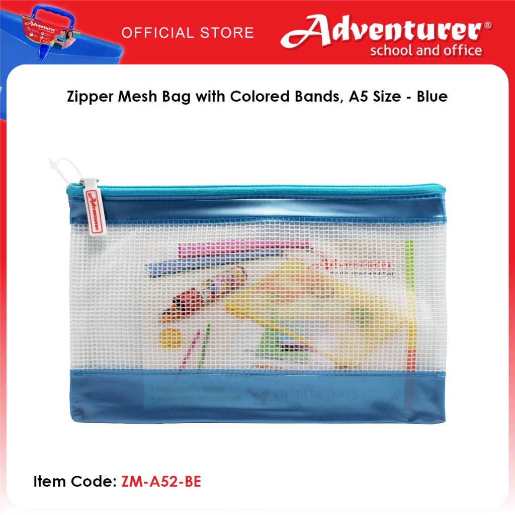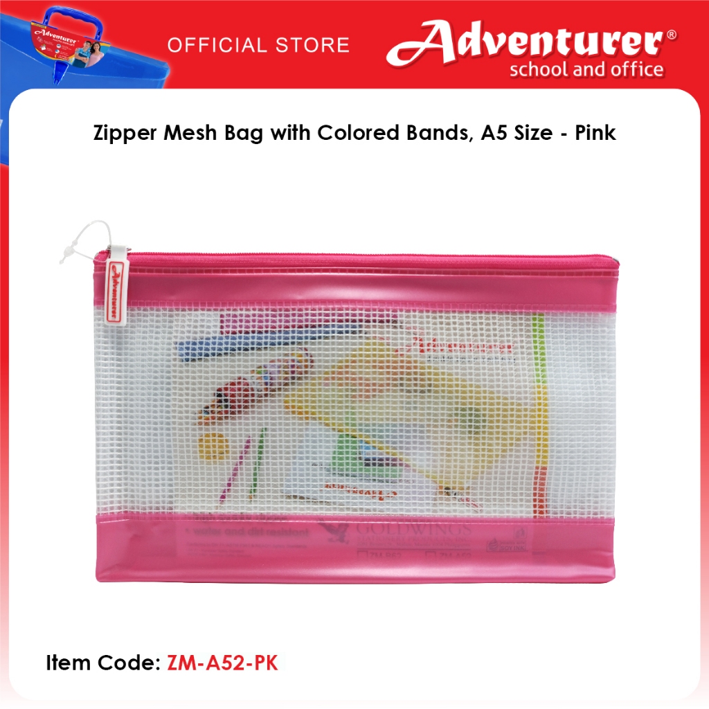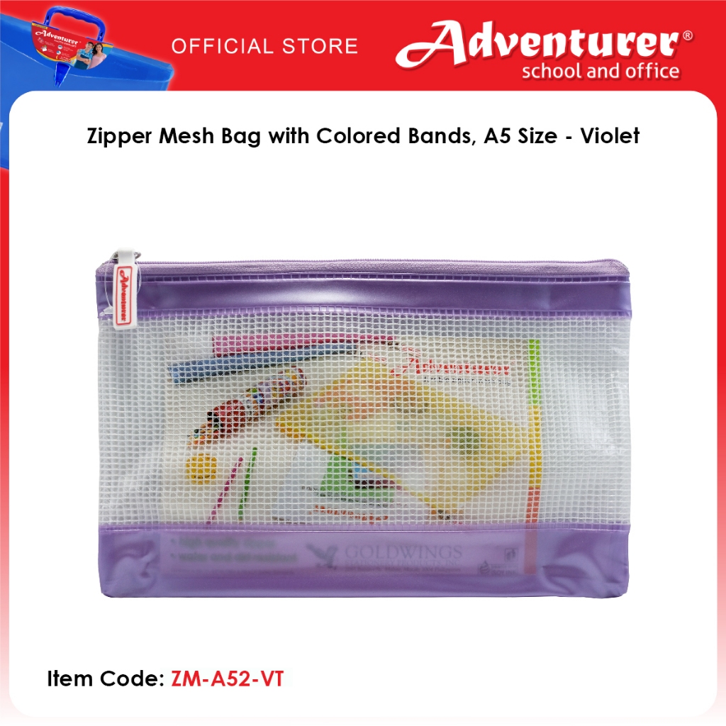Adventurer Zipper Mesh Bag with Colored Bands, A5 Size