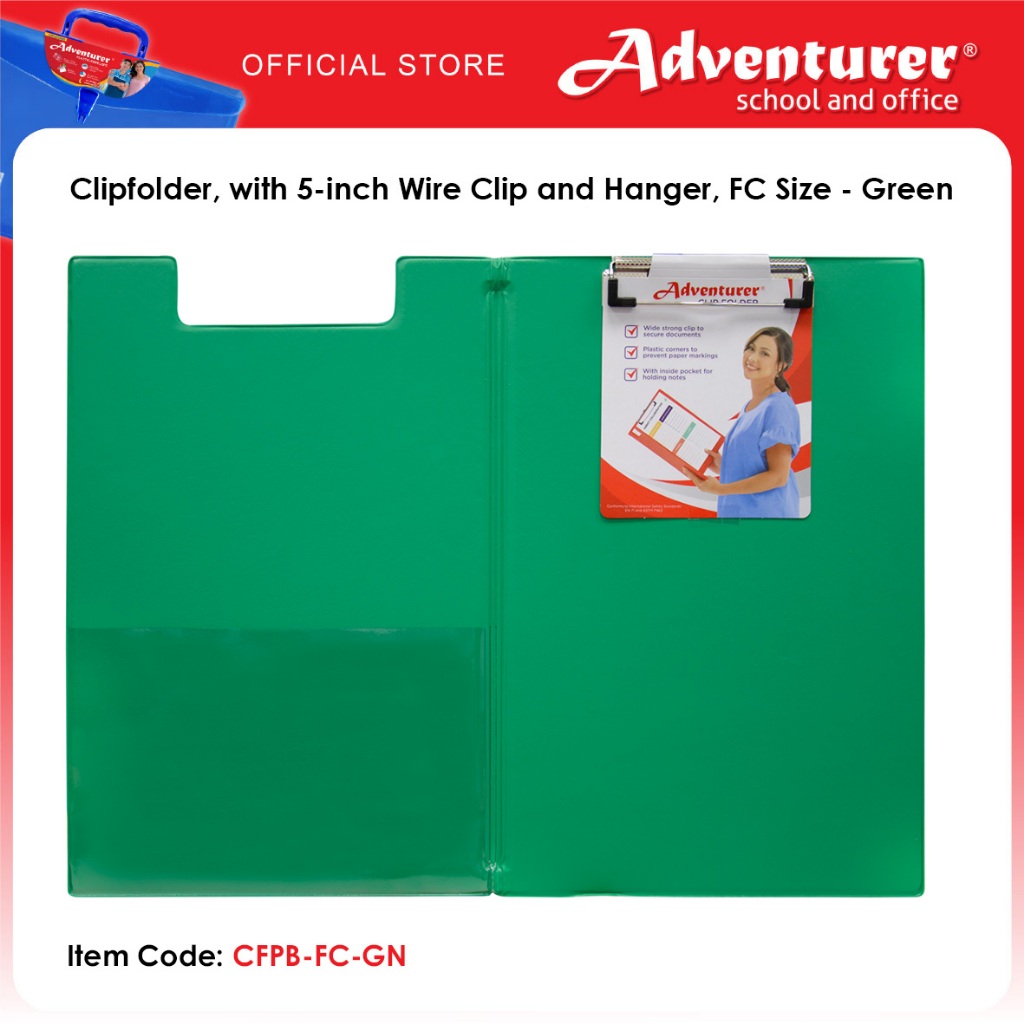 Adventurer Clipfolder, with 5-inch Wire Clip and Hanger, FC Size