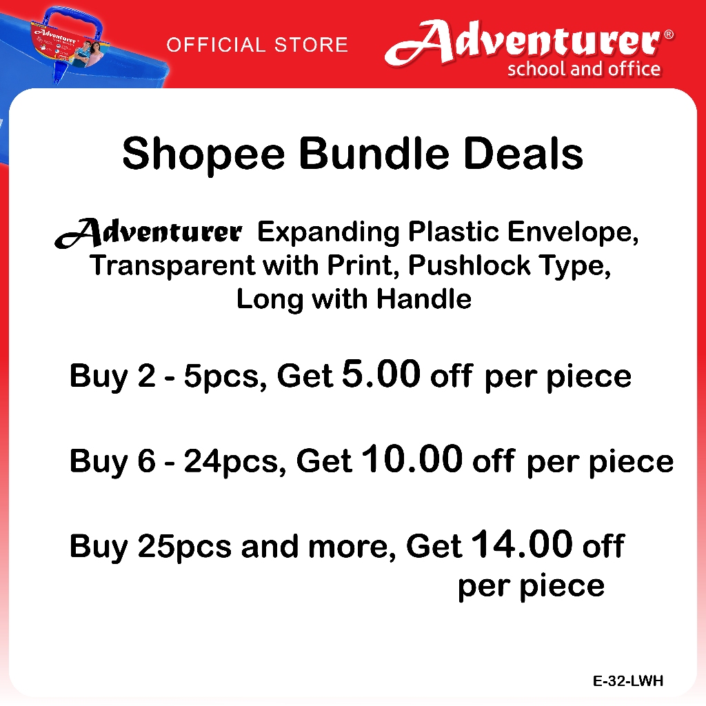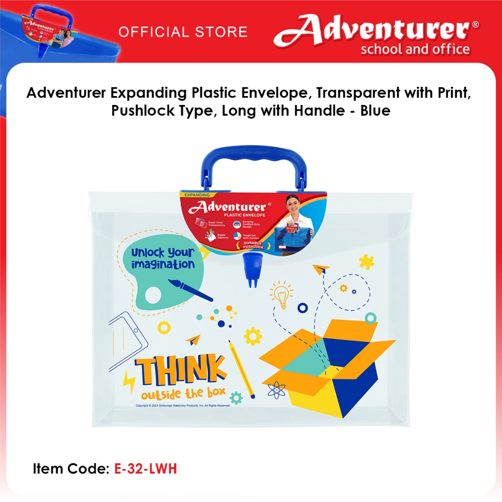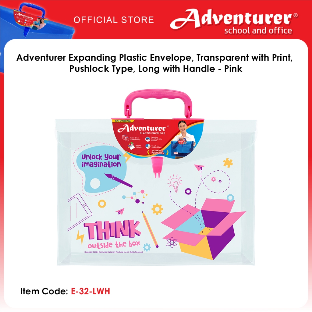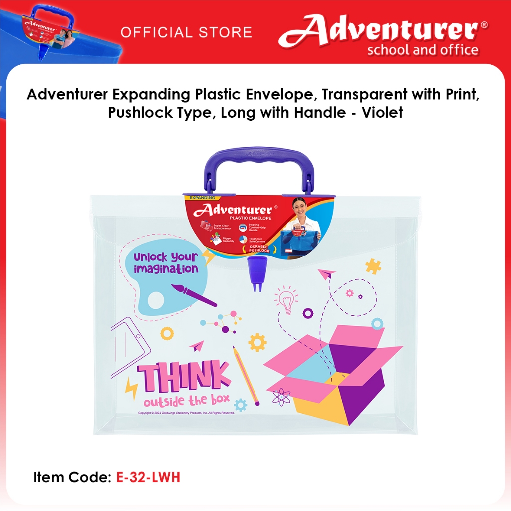 Adventurer Expanding Plastic Envelope, Transparent with Print, Pushlock Type, Long with Handle