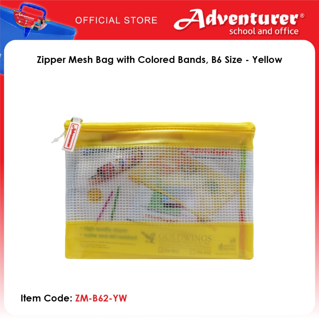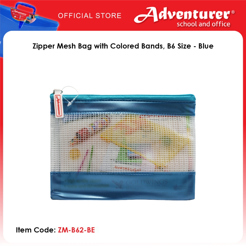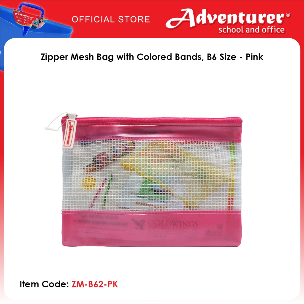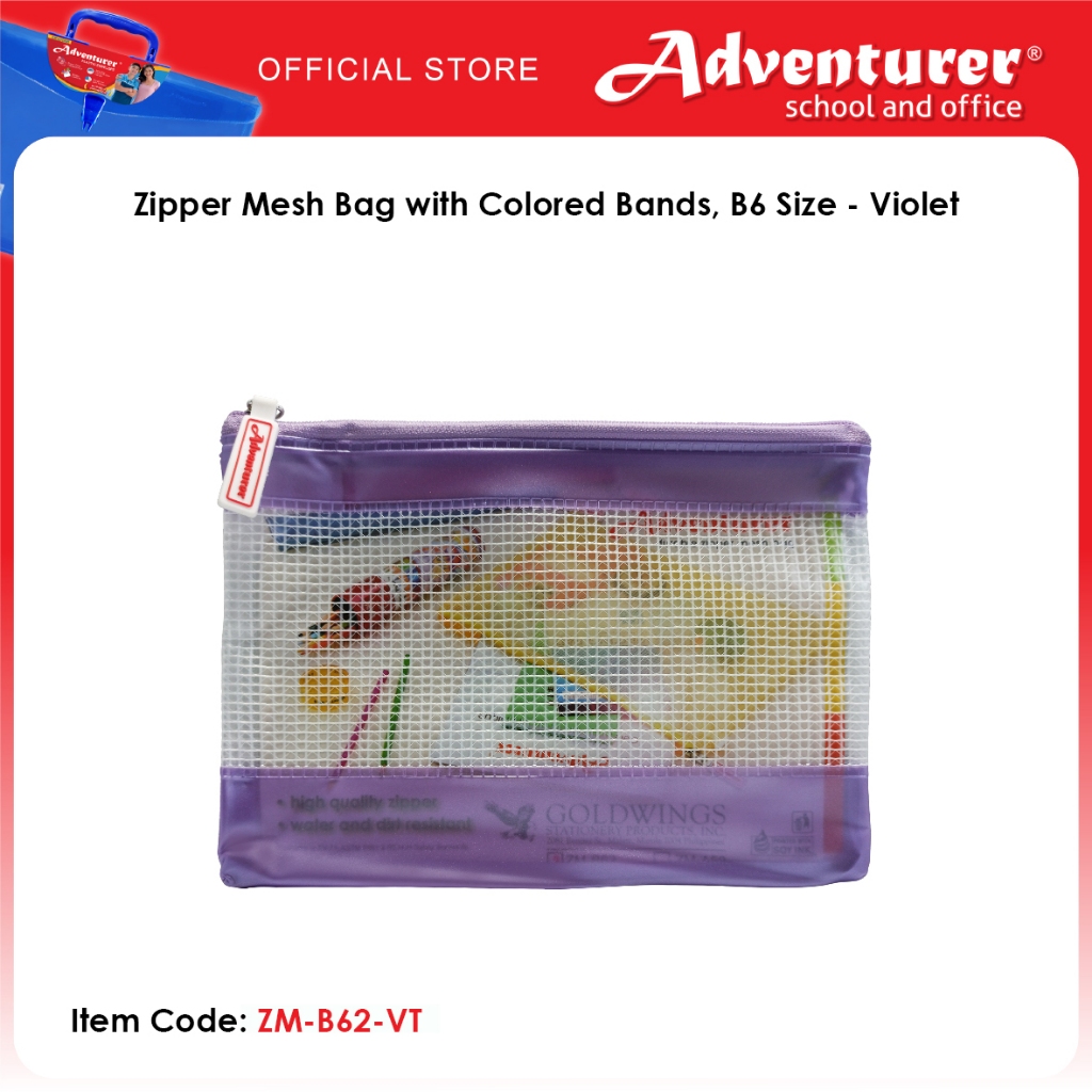 Adventurer Zipper Mesh Bag with Colored Bands, B6 Size