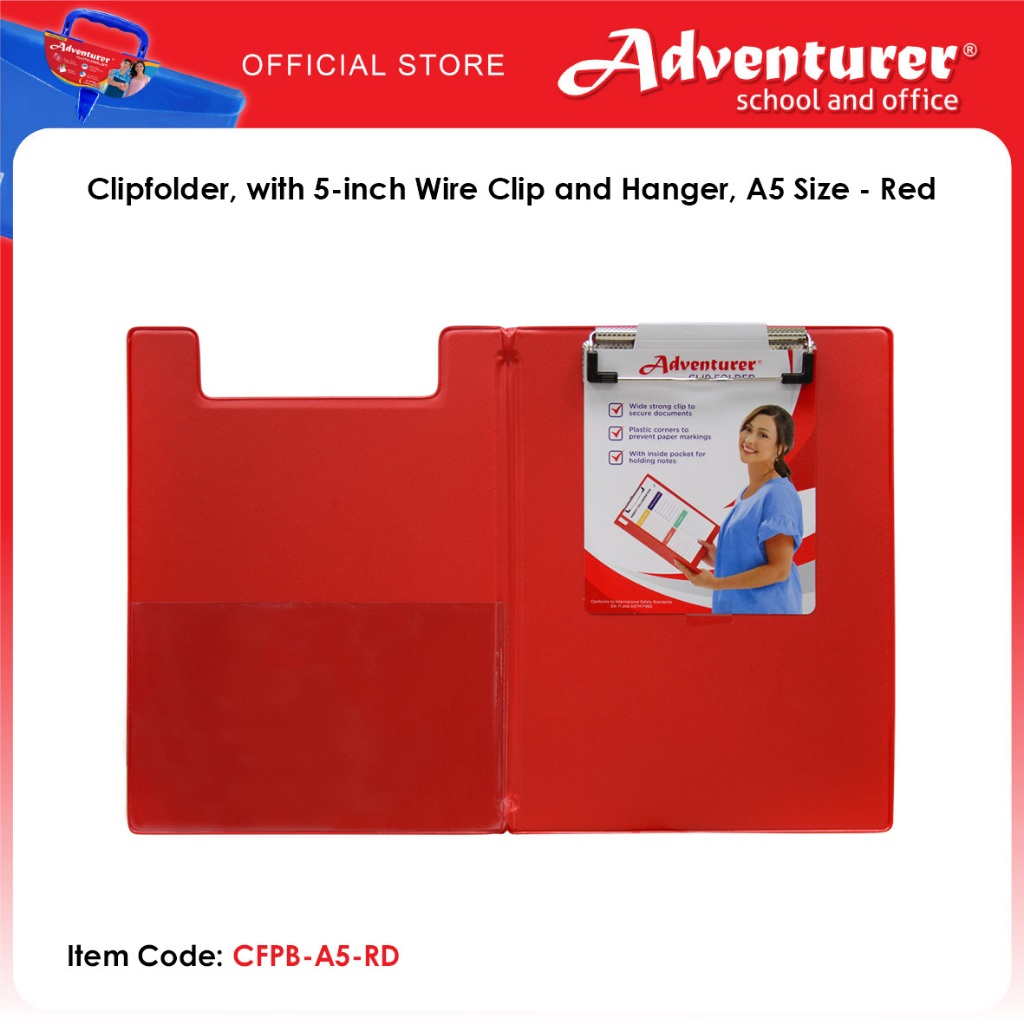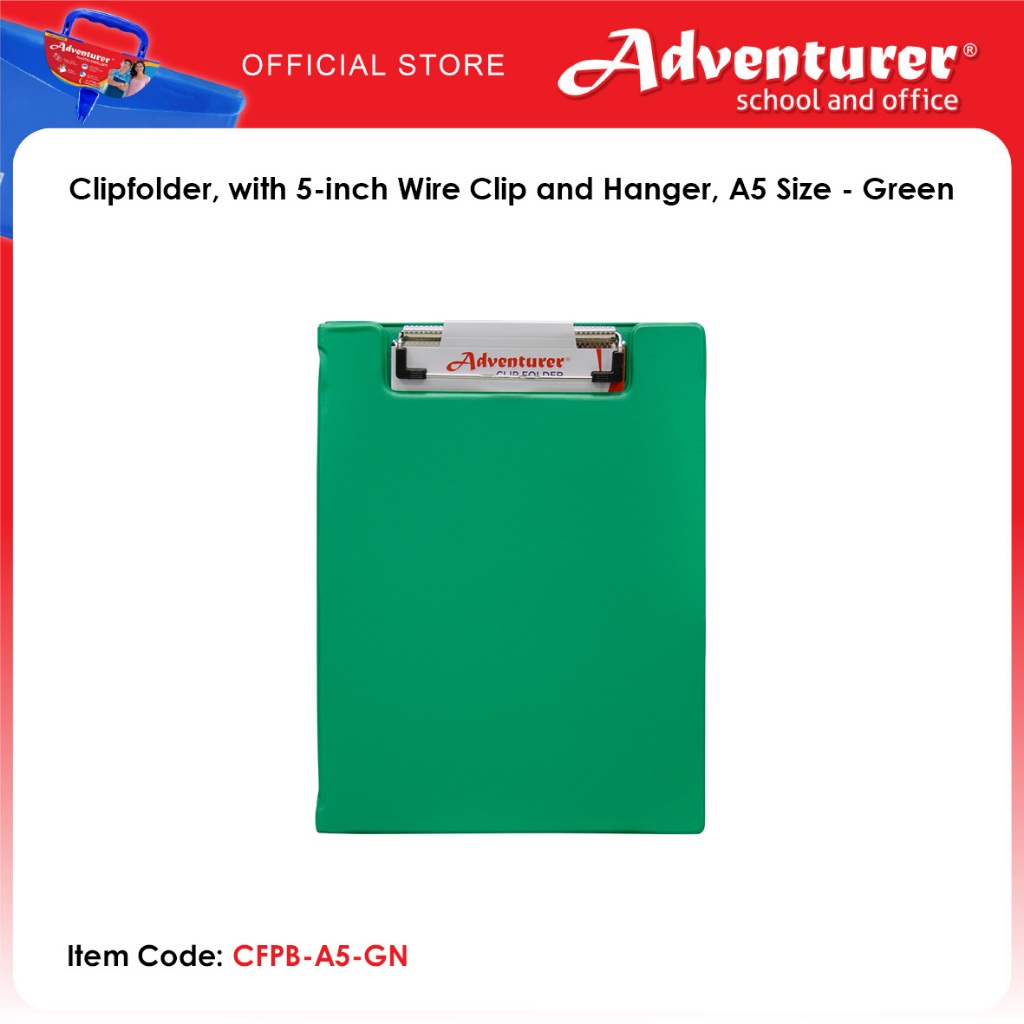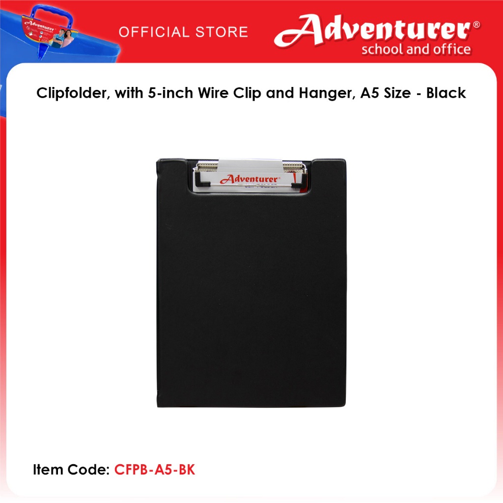 Adventurer Clipfolder, with 5-inch Wire Clip and Hanger, A5 Size