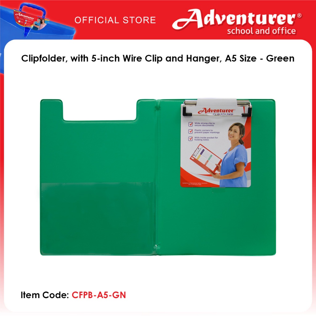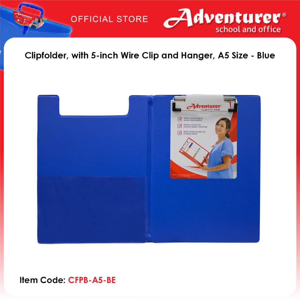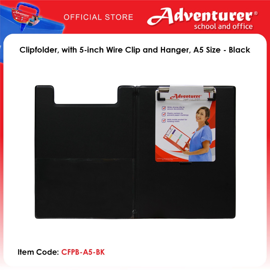 Adventurer Clipfolder, with 5-inch Wire Clip and Hanger, A5 Size