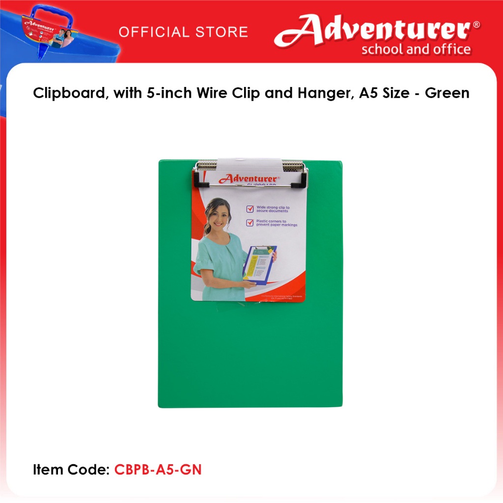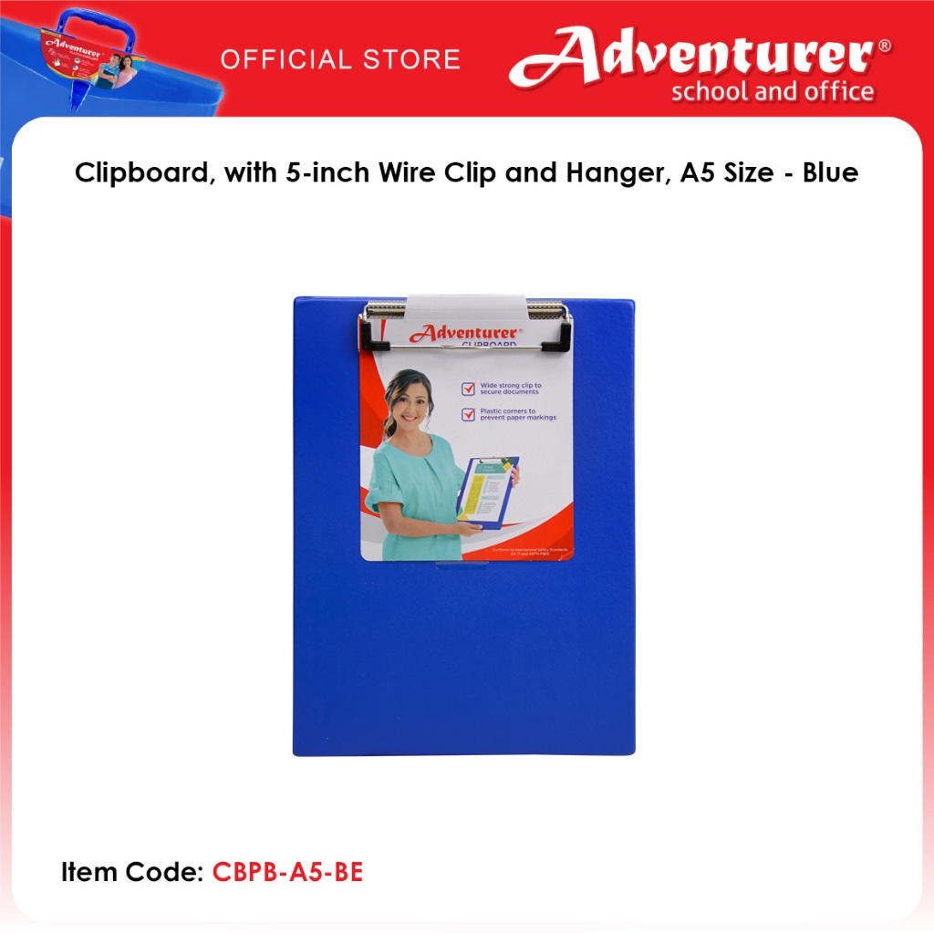 Adventurer Clipboard, with 5-inch Wire Clip and Hanger, A5 Size