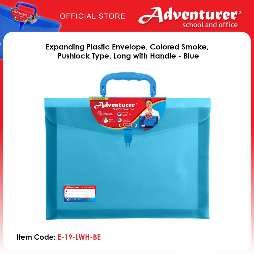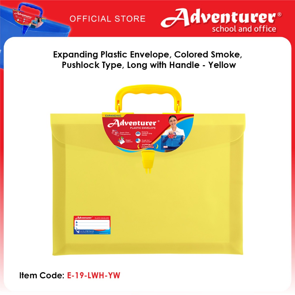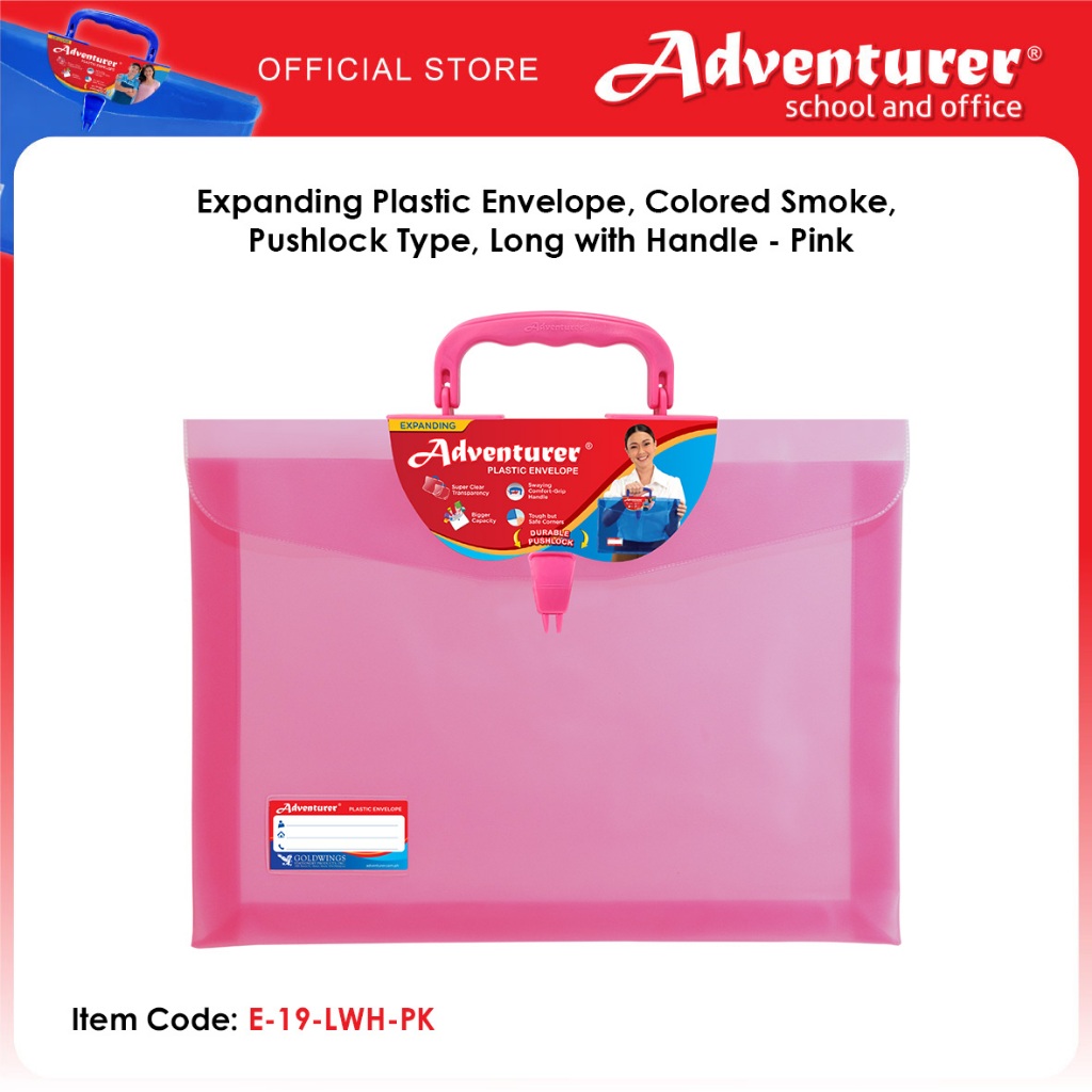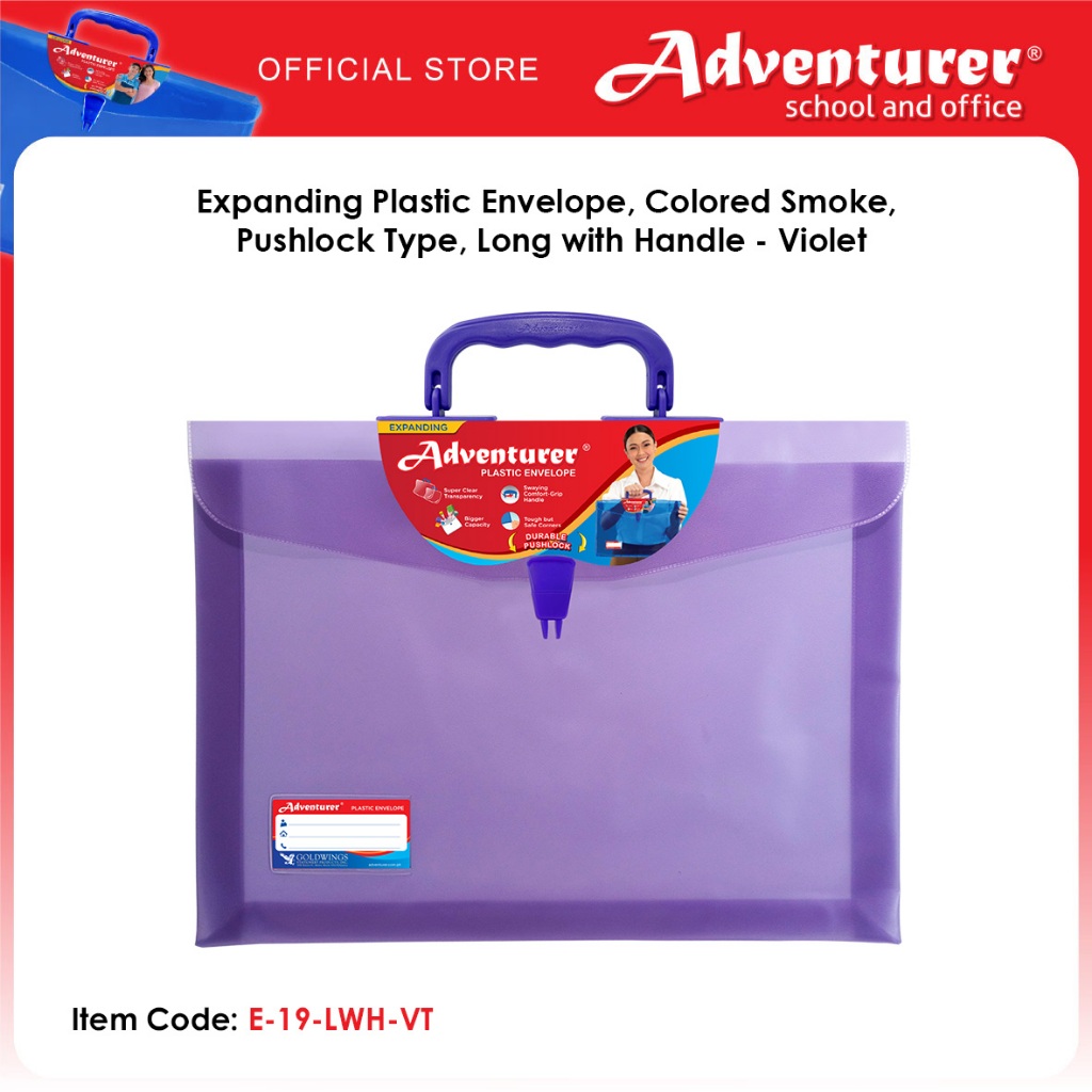 Adventurer Expanding Plastic Envelope, Colored Smoke, Pushlock Type, Long with Handle