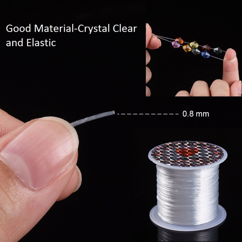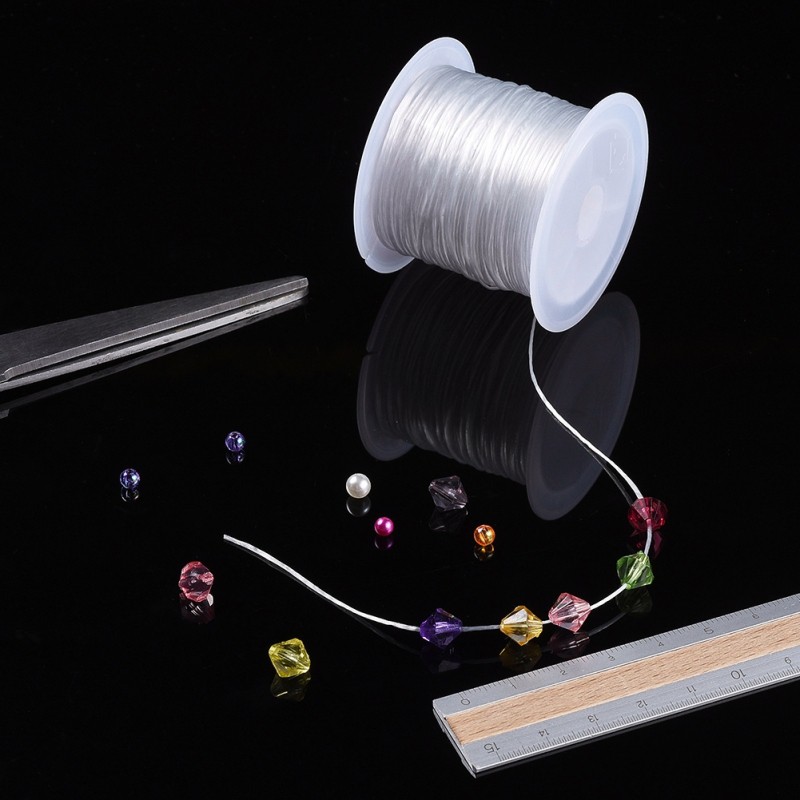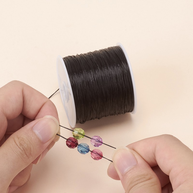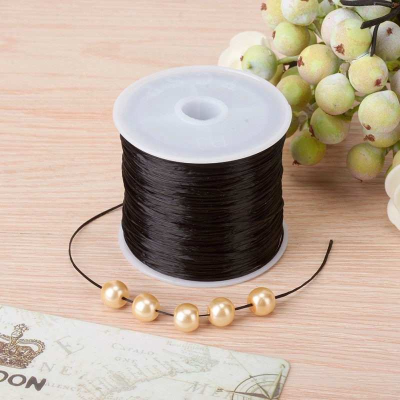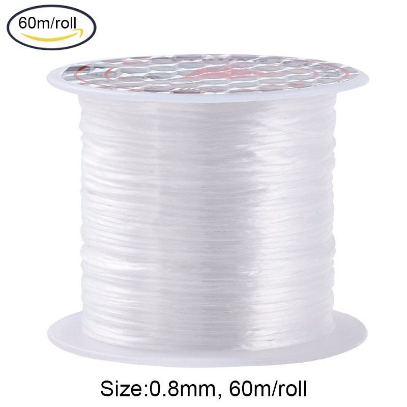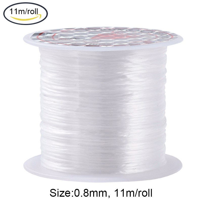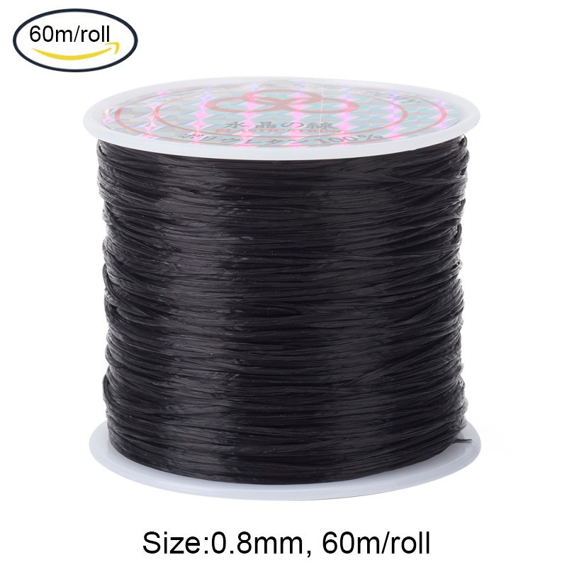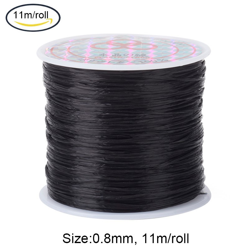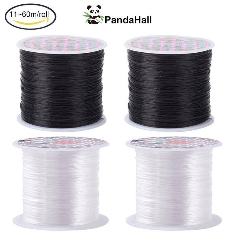 PandaHall 1Roll Flat Elastic Crystal String Elastic Beading Thread for Stretch Bracelet Making Dyed White/Black For Jewelry Making- 0.8mm, 60m/11m/roll.