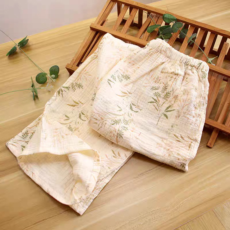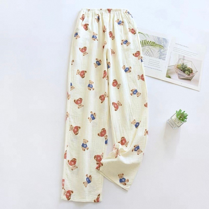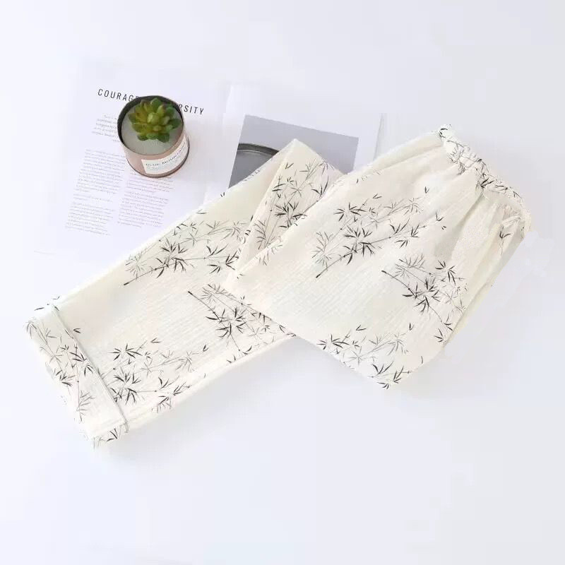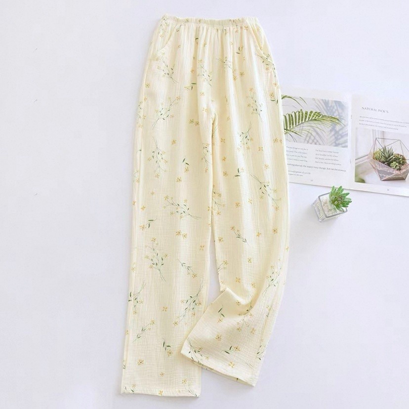 Slub Printed Cloud Cotton Pajama Pants Women National Style Casual Trousers Walking Curved Home Pants