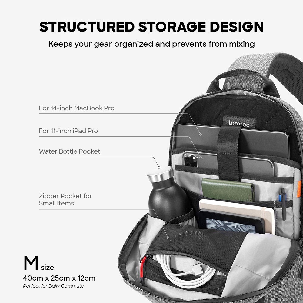 tomtoc T24 Crossbody Bag for Ipad & Macbook Men Sling Bag Daily Shoulder Bag