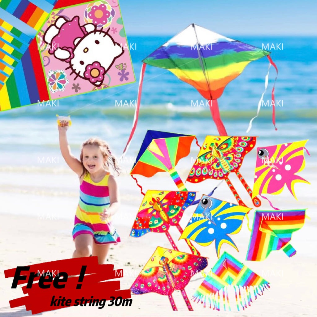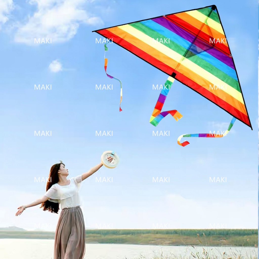 Rainbow Kite Saranggola for Kids and Adults Large Triangle Kite with String Outdoor Fun Toy Stock