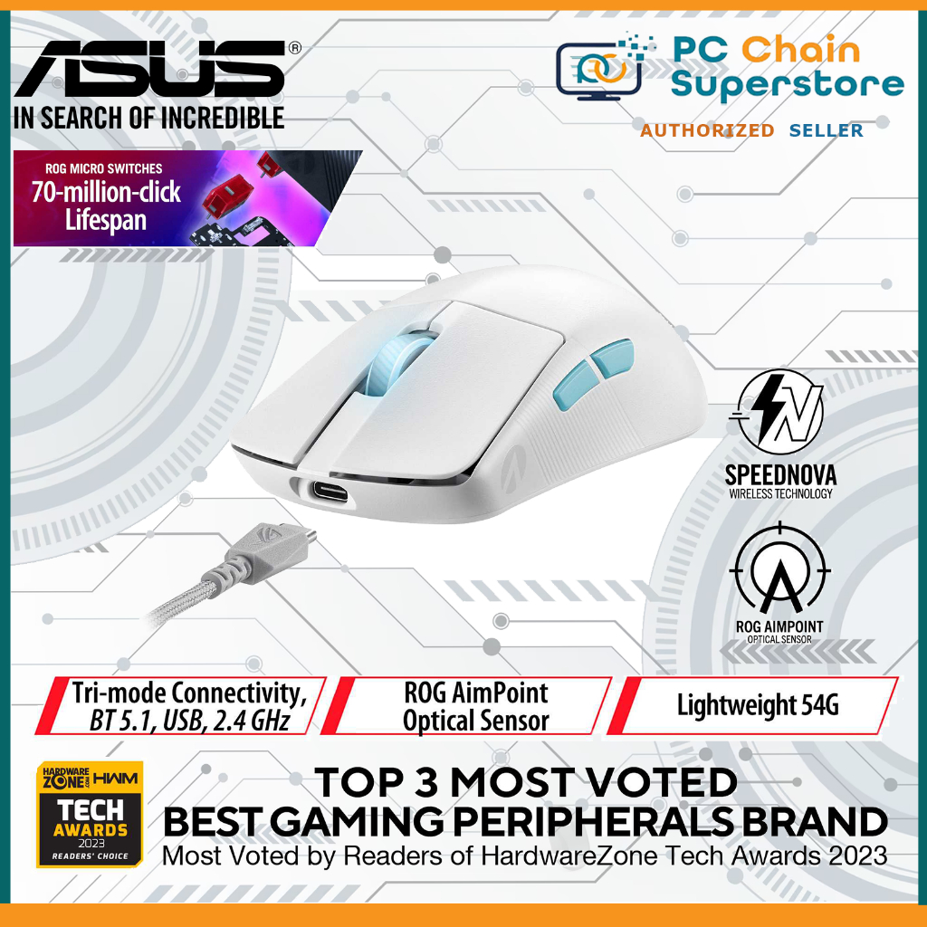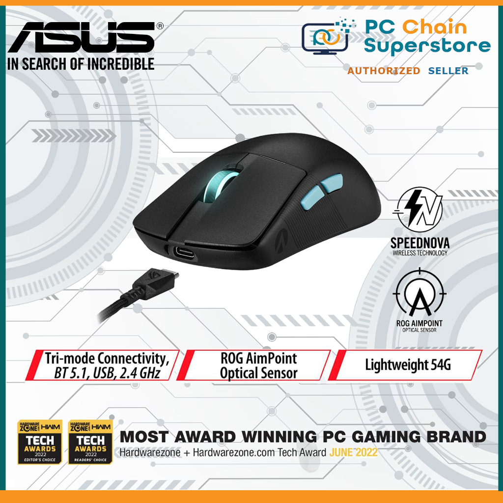 Asus ROG Harpe Ace Aim Lab Edition Wireless Gaming Mouse - 54G 36K DPI | 2.4Ghz / Bluetooth / Wired