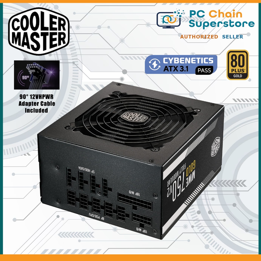 Cooler Master MWE 750w 80+ Gold V2 Full Modular ATX 3.1 Power Supply - 12VHPWR Adapter / Black