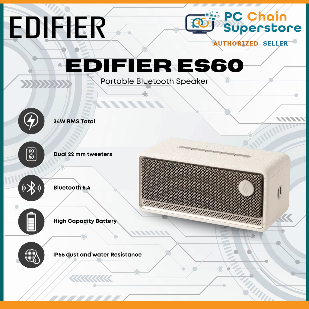 Edifier ES60 Portable Bluetooth Speaker - 34W RMS / BT 5.4 / IP66 Dust and Water Resistant
