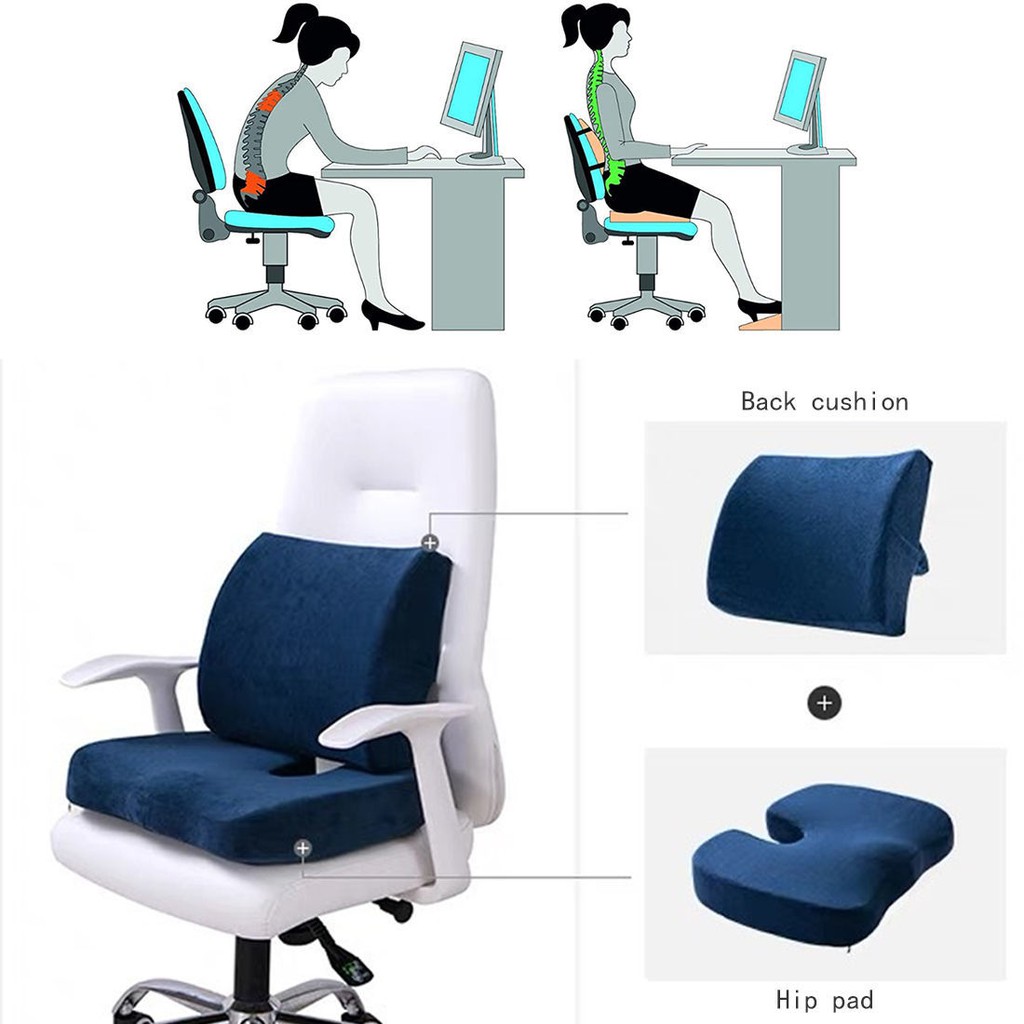 Thick Set Memory Foam Seat Cushion&Lumbar Breathable Relieve Back Pain Support For Home/Office