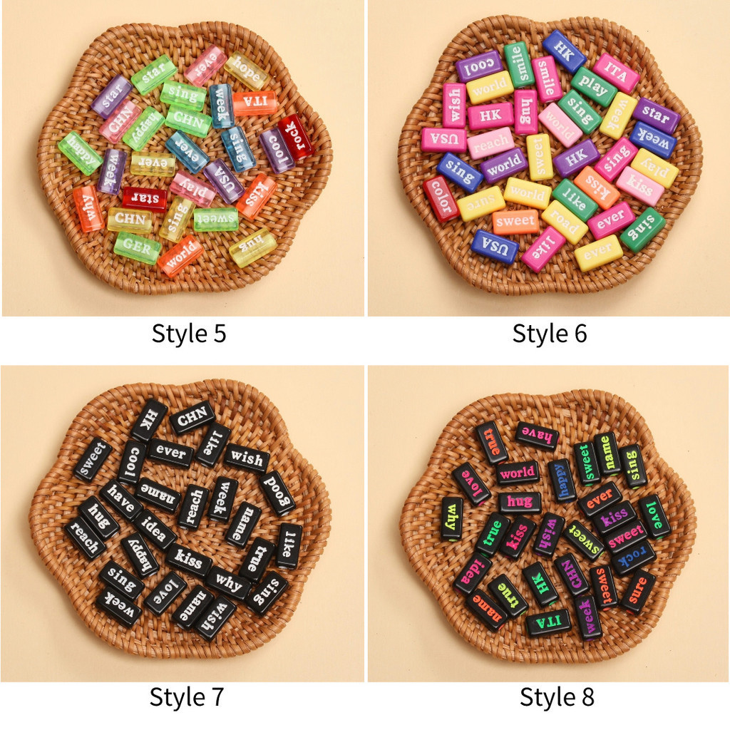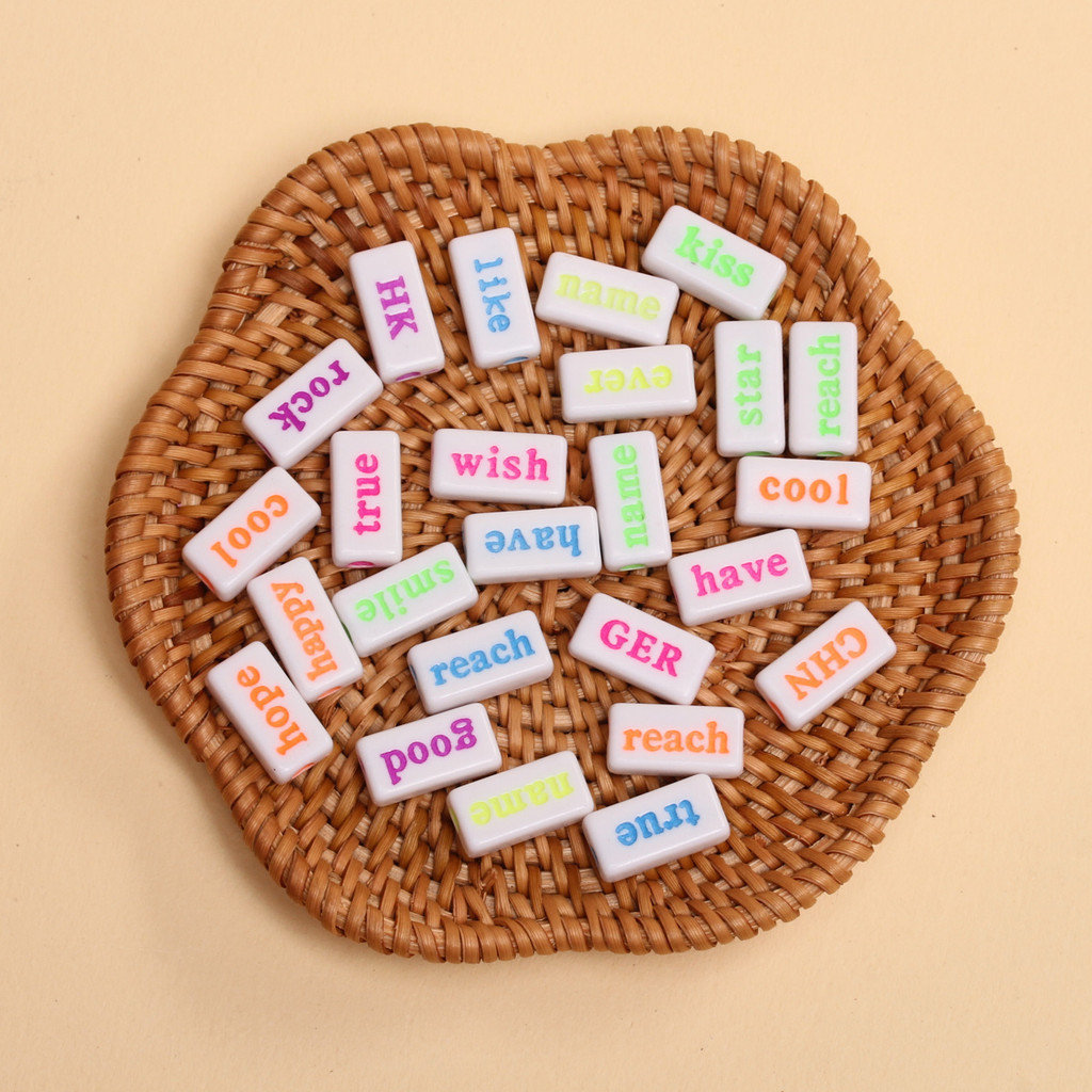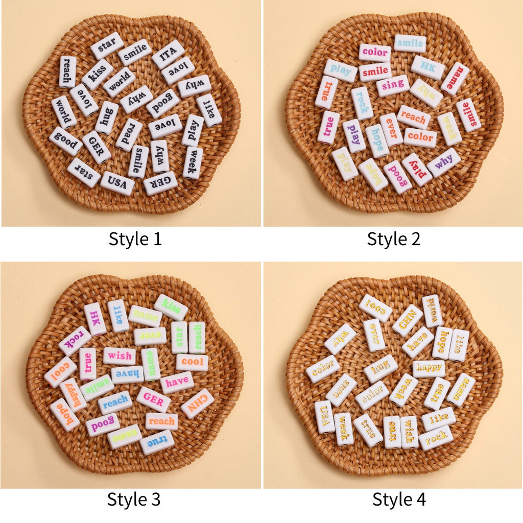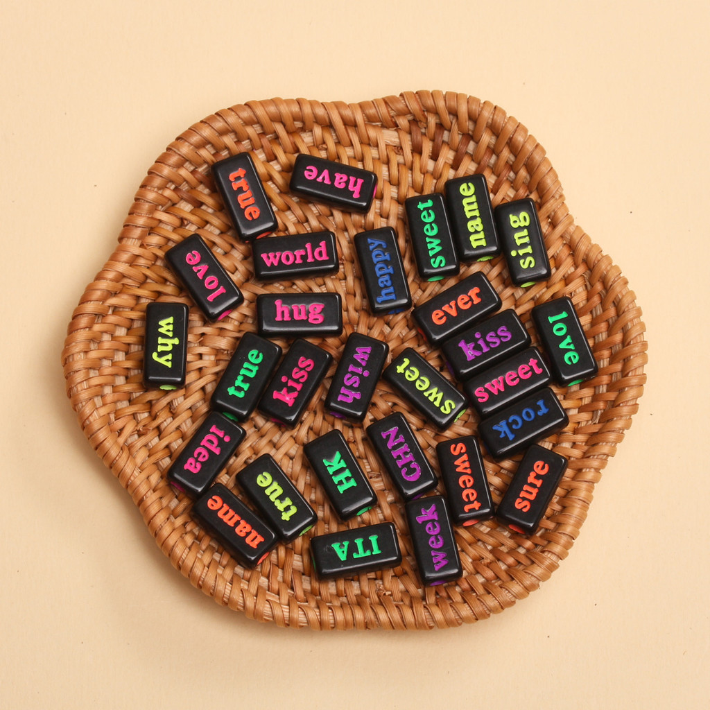 30Pcs Fashion Mixed English Letters Rectangle Beads 14.5x7.5mm Acrylic DIY Materials for Keychain Bracelet Making