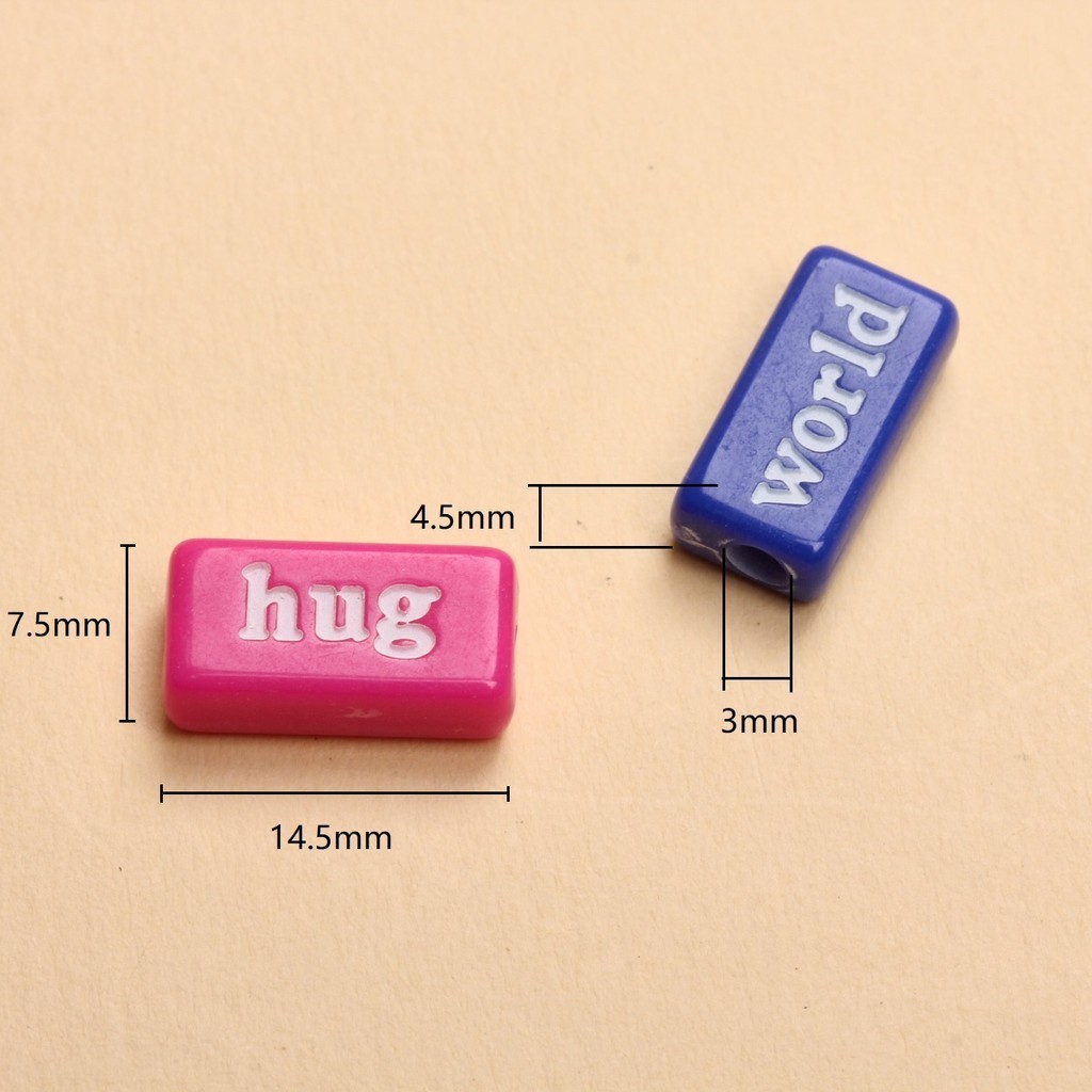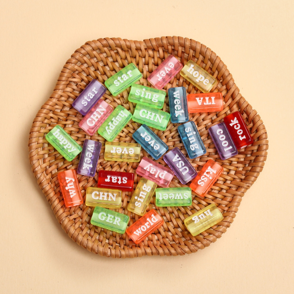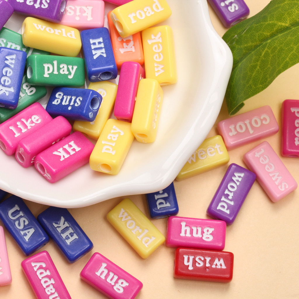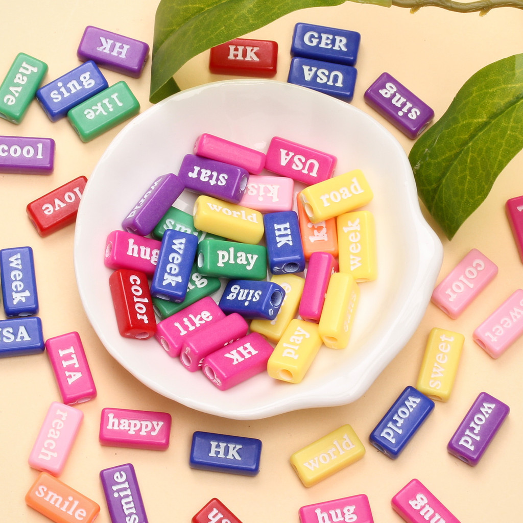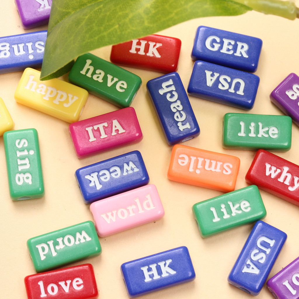 30Pcs Fashion Mixed English Letters Rectangle Beads 14.5x7.5mm Acrylic DIY Materials for Keychain Bracelet Making