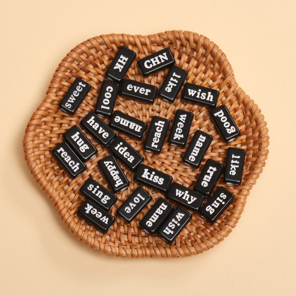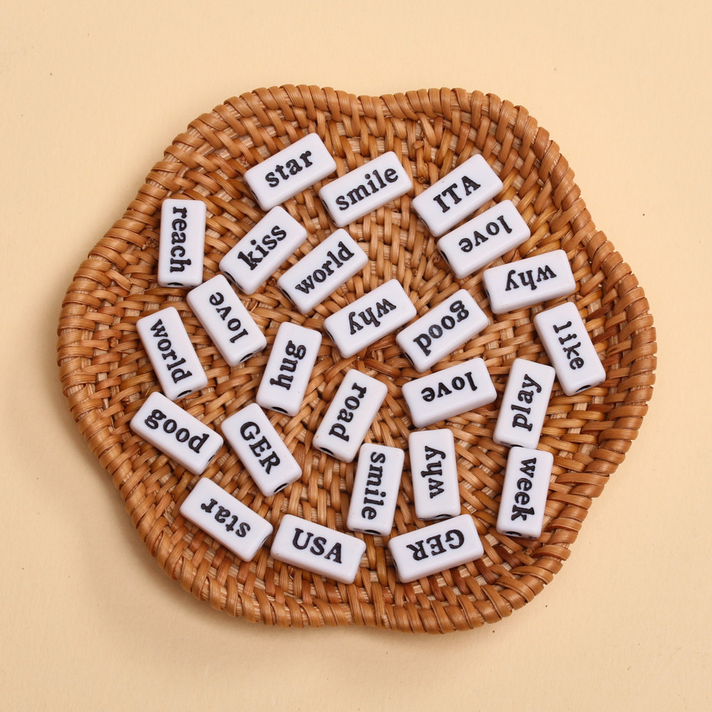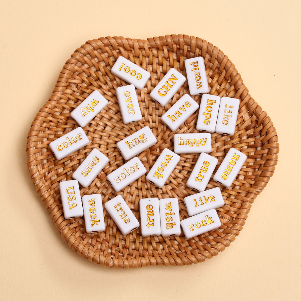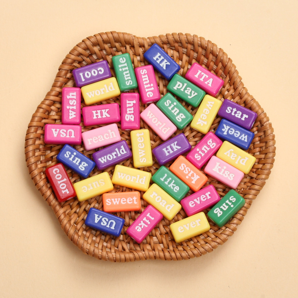 30Pcs Fashion Mixed English Letters Rectangle Beads 14.5x7.5mm Acrylic DIY Materials for Keychain Bracelet Making