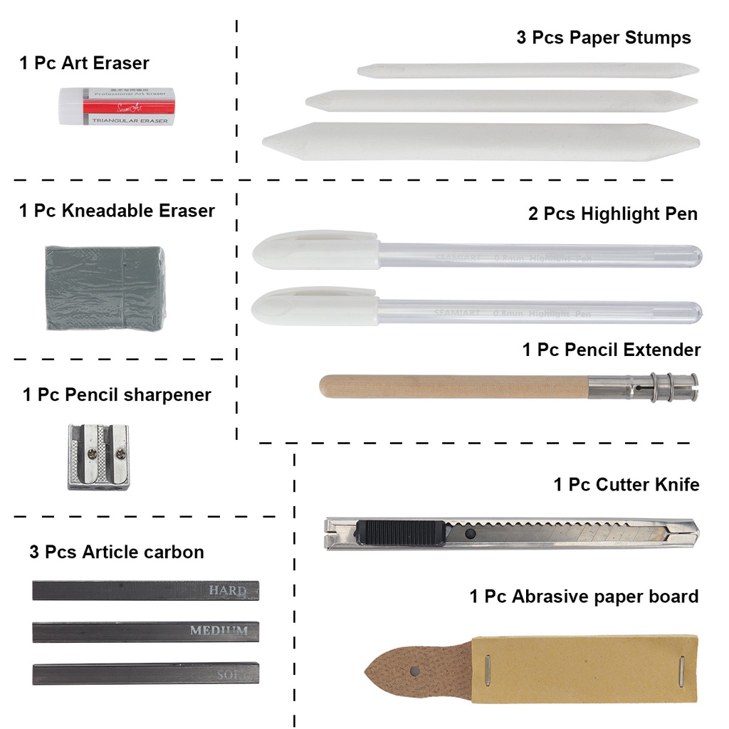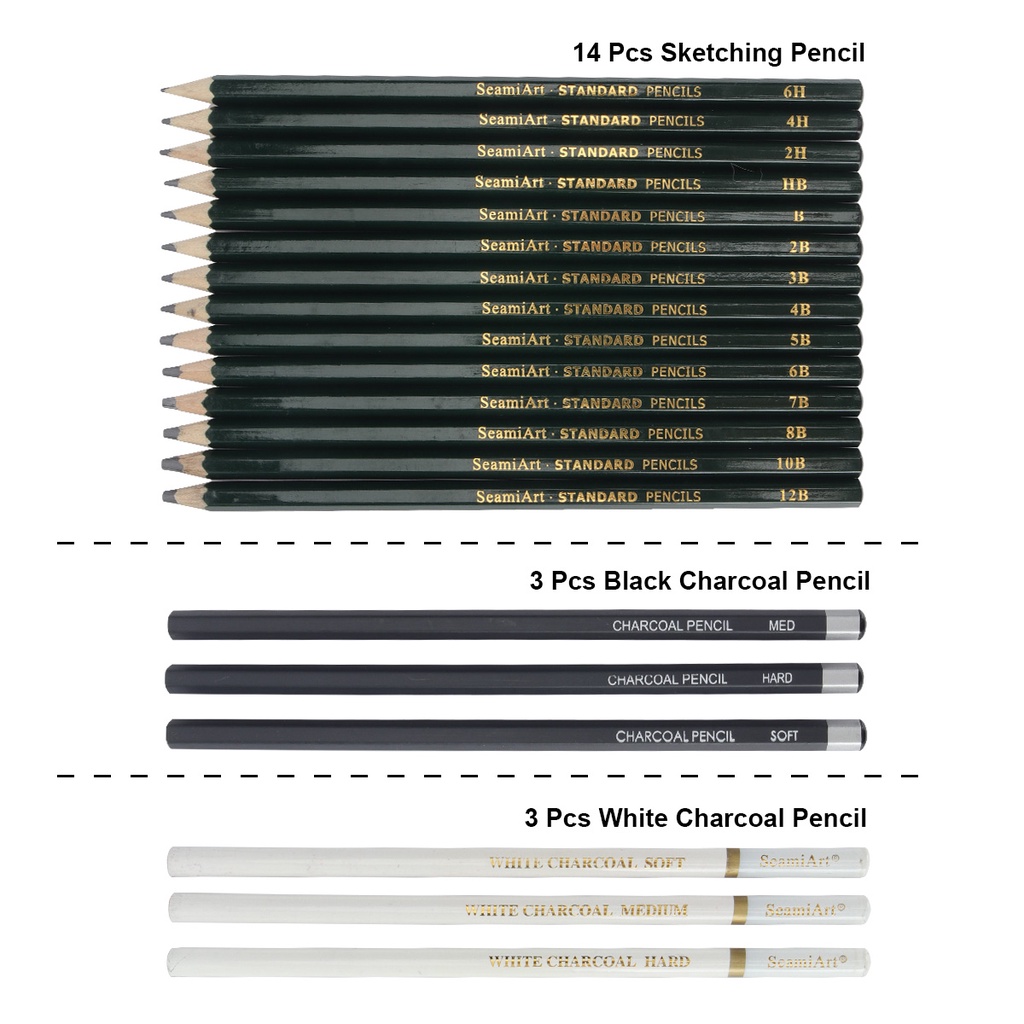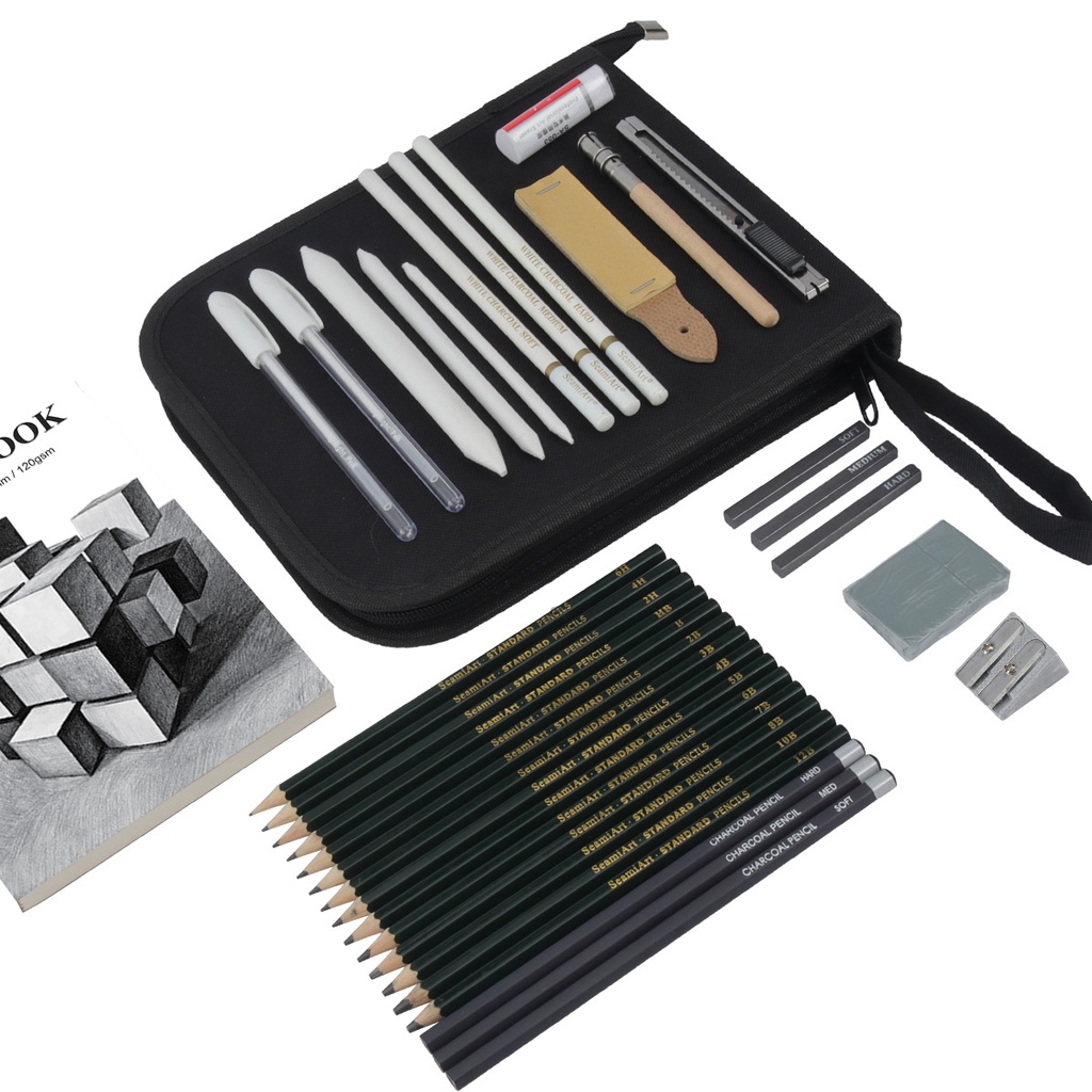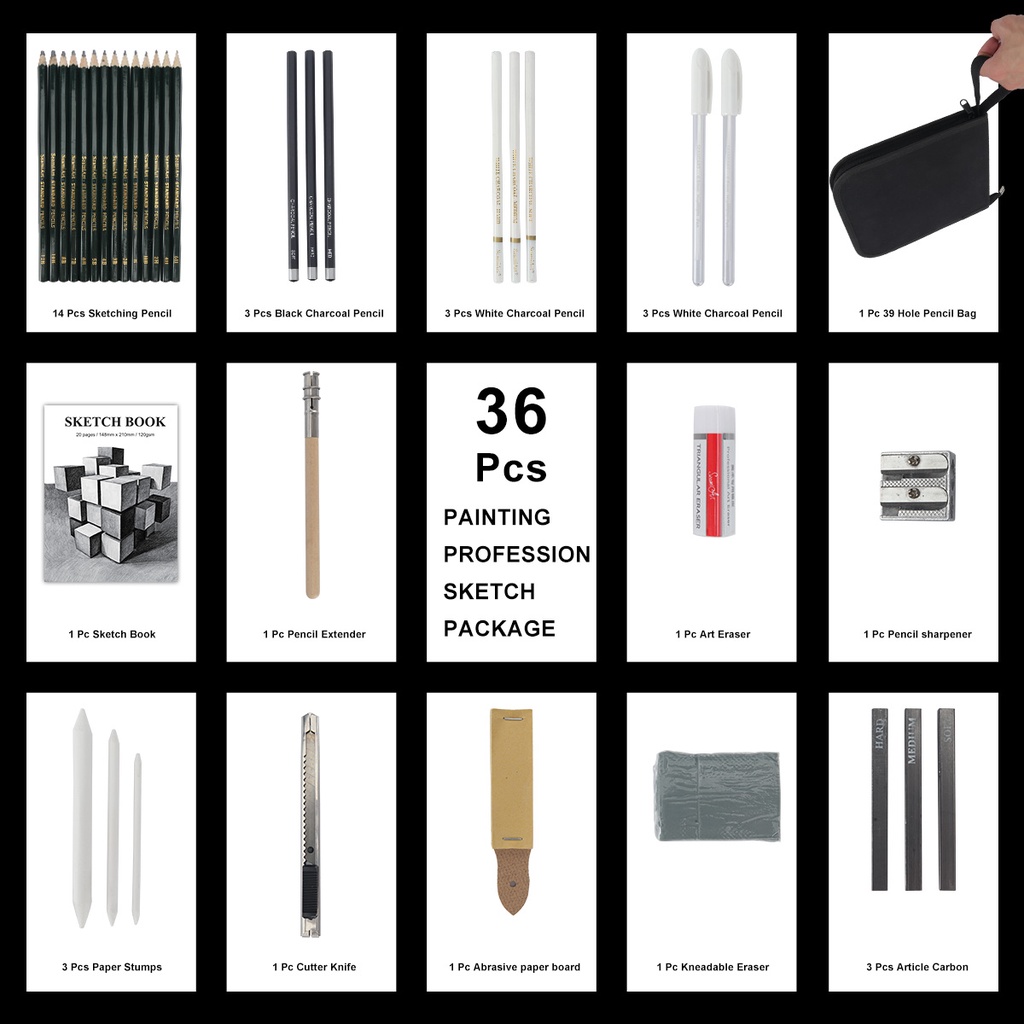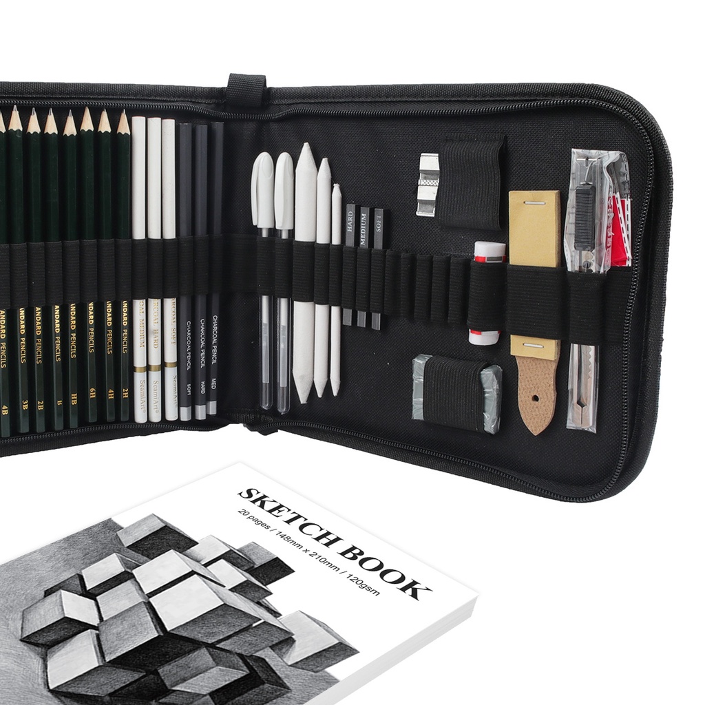 Seamiart [Ready Stock] 36pcs Drawing Sketch Set with Charcoal Pencils 6H-12B Pencils Sketch Book Art Suppliers Stationery