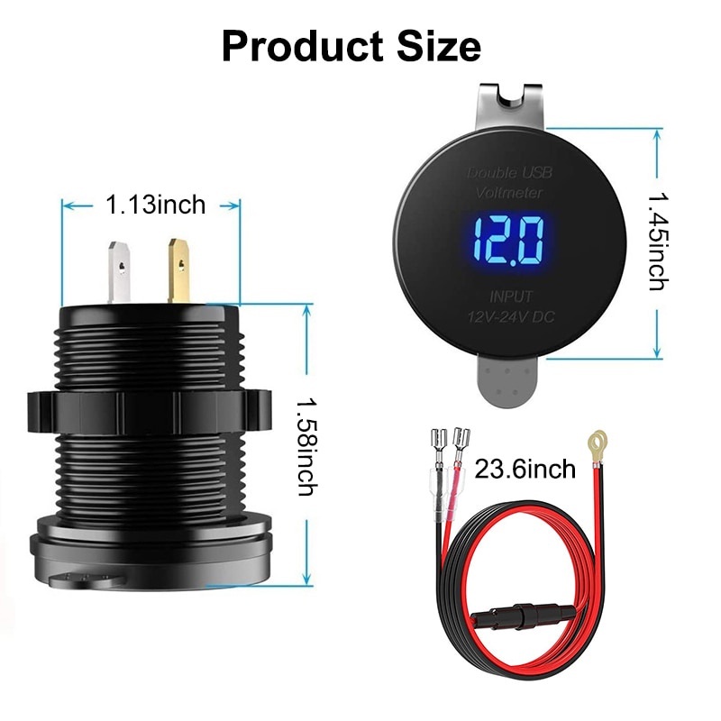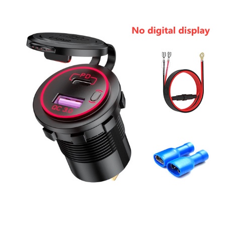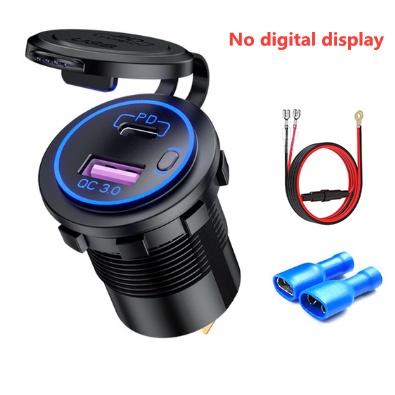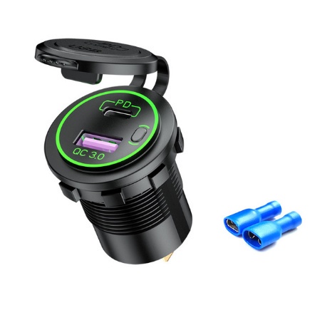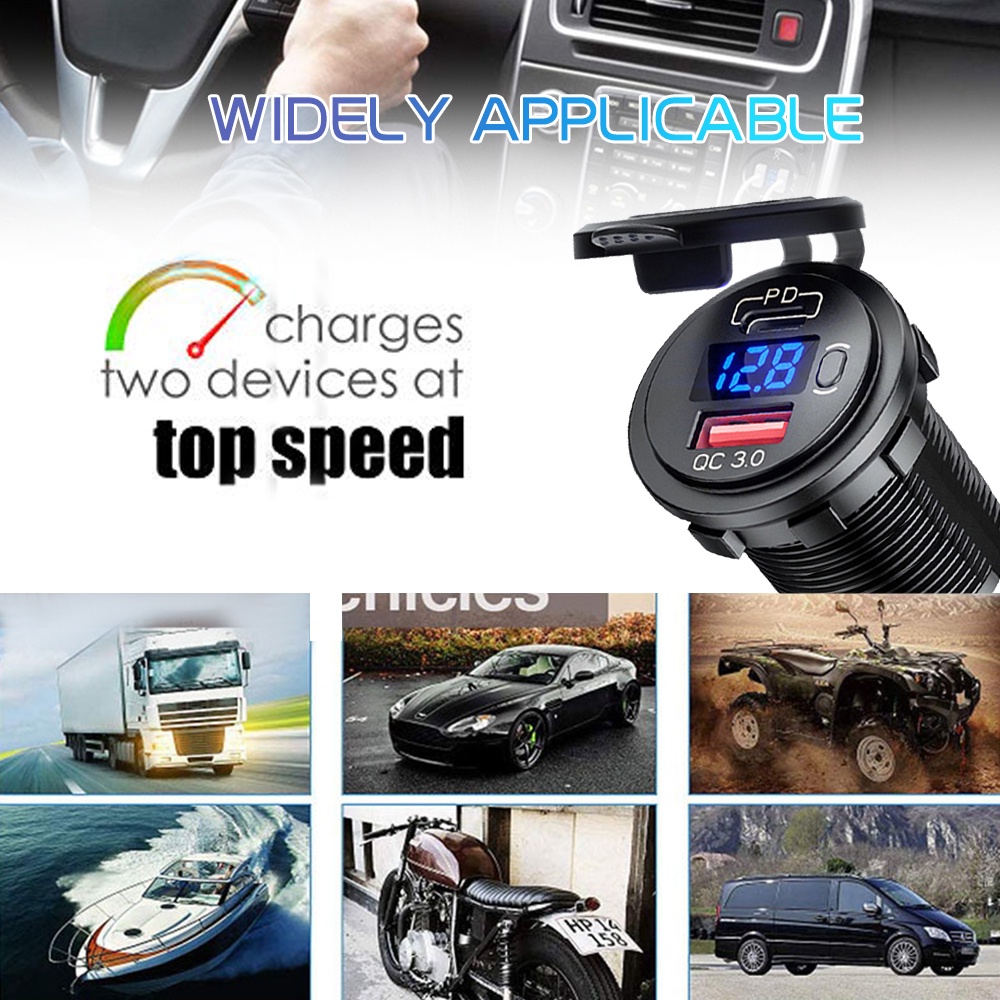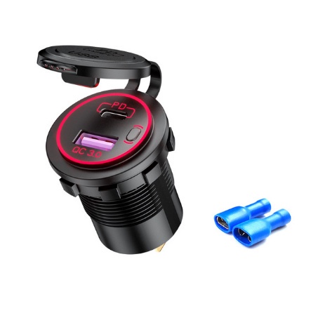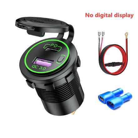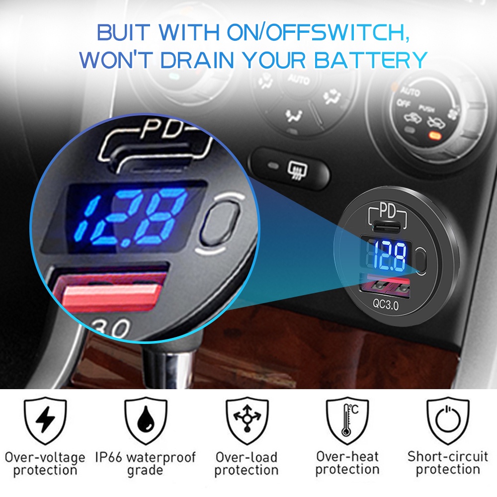 12V-24V USB Car Charger QC3.0 PD Type C with Switch Socket for 12V/24V Vehicles Boat Motorcycle SUV Bus Truck Caravan Marine