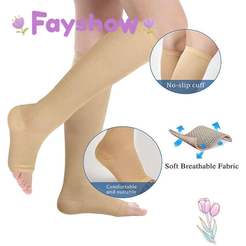 FAYSHOW2 Compression Socks, Black S/M/L/XL/XXL Sports Compression Socks, Flexible Open Toe Medical Knee High Running Compression Socks For Women & Men